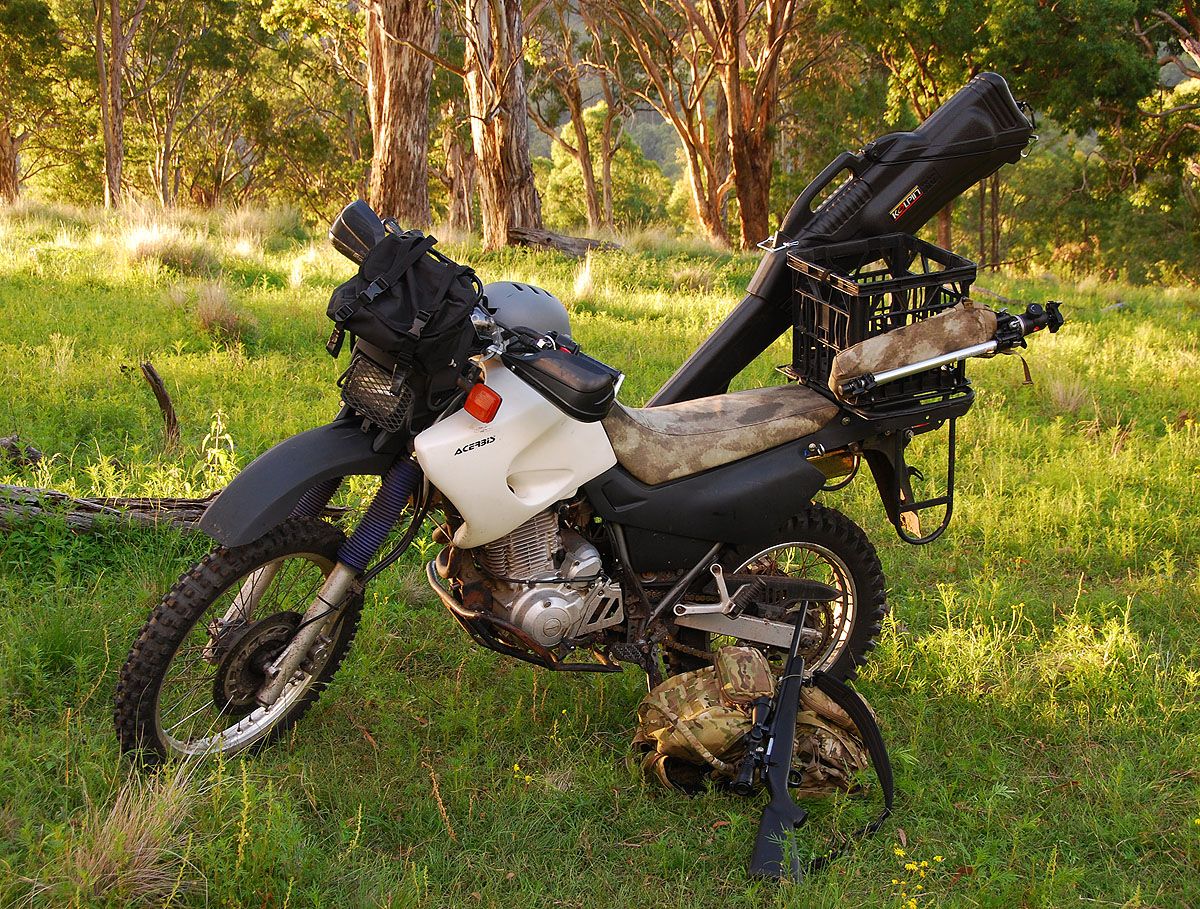 When the above was taken I was riding up to a spot around the other side of the hill in the right of the picture, about as far back as one can be on the place and almost as far from the hut. Sat out there for a couple of hours and set out for home (and to pack up) around 7.45pm. Rode 100 yards and the back end of the bike started feeling funny. Sure enough I had spiked a tyre and sure enough the repair kit was back at the hut … yes I can see you all rolling your eyes..!!!!!!!!! It would have taken me maybe two or three hours to walk back from here as not only is it way out the back of the place it is also one of the heist points on this property. Soooo…. I decided to see how far one could get as even if I walked I would not get the Toyota and trailer up there to recover the bike, so I started off and took the most direct (and steepest) track down. It was all fun and exciting as the back end obviously was not going to track well and was constantly trying to kick out. At one point I had to strop and cut the tube out of the chain/sprocket… oops…. long story short I made it down onto the creek flats safe enough and also managed to snot another hog on the way.
