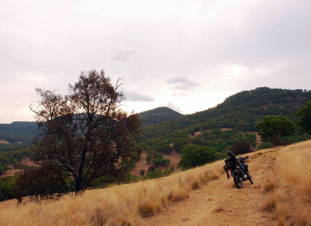When the above was taken I was riding up to a spot around the other side of the hill in the right of the picture, about as far back as one can be on the place and almost as far from the hut. Sat out there for a couple of hours and set out for home (and to pack up) around 7.45pm. Rode 100 yards and the back end of the bike started feeling funny. Sure enough I had spiked a tyre and sure enough the repair kit was back at the hut … yes I can see you all rolling your eyes..!!!!!!!!! It would have taken me maybe two or three hours to walk back from here as not only is it way out the back of the place it is also one of the heist points on this property. Soooo…. I decided to see how far one could get as even if I walked I would not get the Toyota and trailer up there to recover the bike, so I started off and took the most direct (and steepest) track down. It was all fun and exciting as the back end obviously was not going to track well and was constantly trying to kick out. At one point I had to strop and cut the tube out of the chain/sprocket… oops…. long story short I made it down onto the creek flats safe enough and also managed to snot another hog on the way.