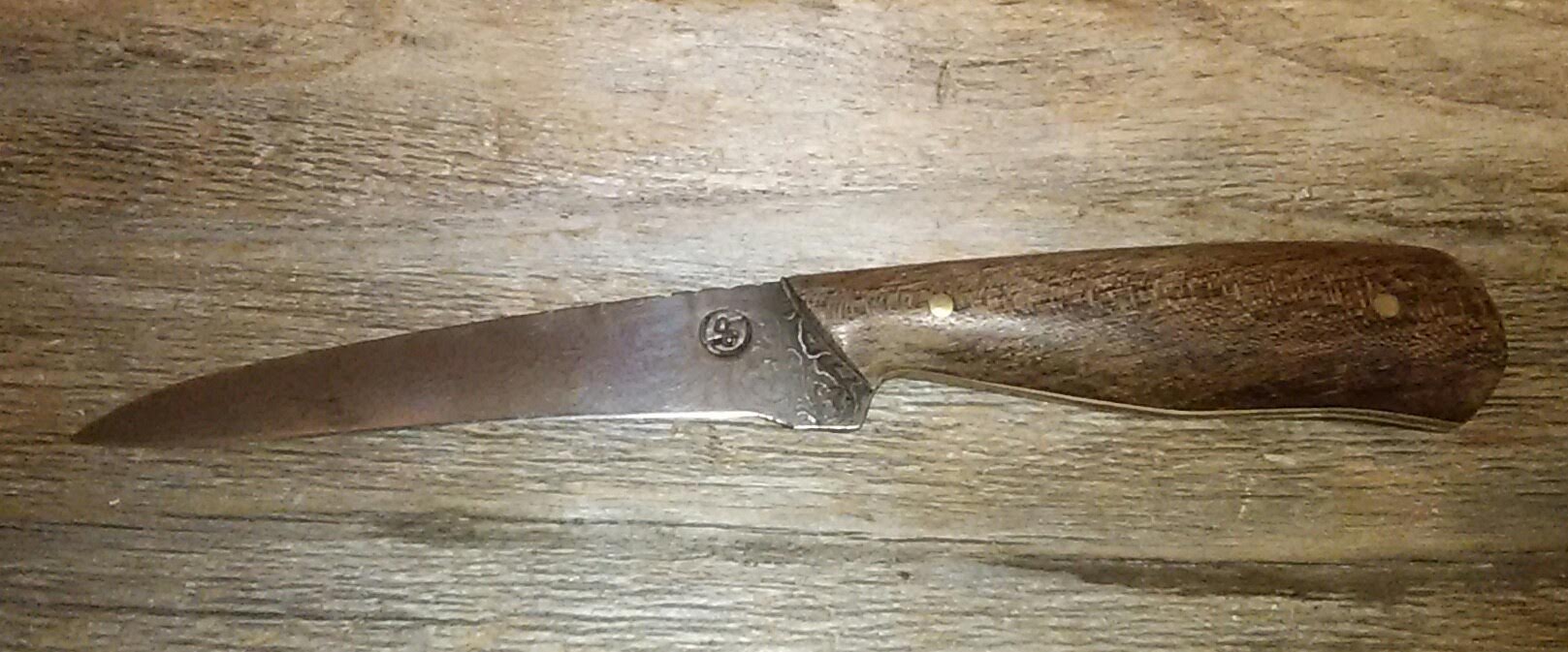 Bought this knife today at an auction. I apologize for bad picture but should give you an idea. Has a damascus blade with an RR stamp, on R upright the other upside down. Is this a logo for Rough Rider or is this a better quality knife you think? Also how does one tell if it is a real damascus steel blade? Thanks for any help you can provide!