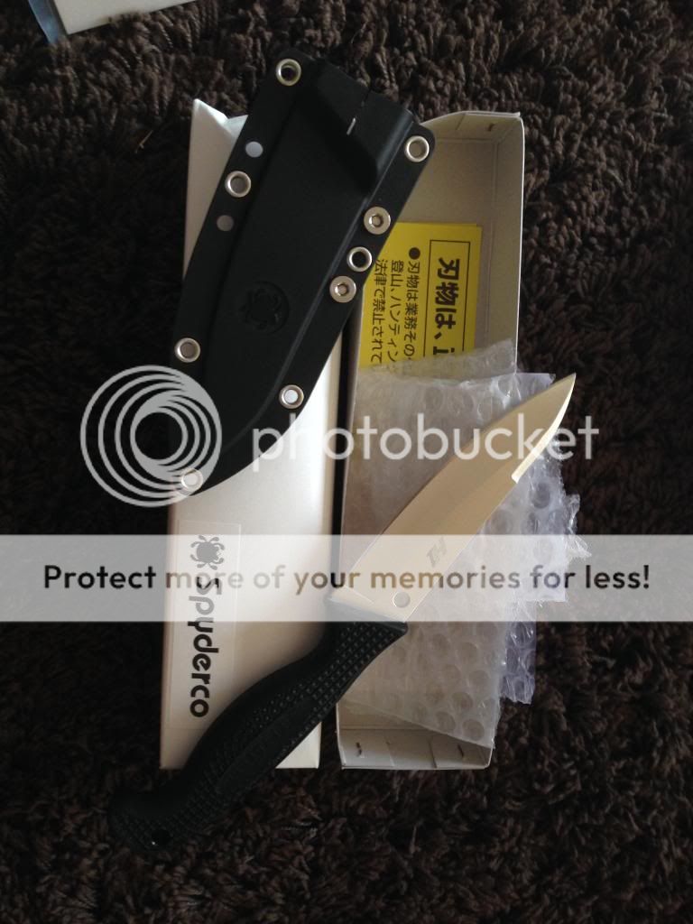 it didn't come in a spyderco factory box but the logos look correct it's pretty sharp and the sheath looks of really good quality. The only thing I am questioning is the logo on the handle. I'll find out when I take it into the ocean and see if it rusts.