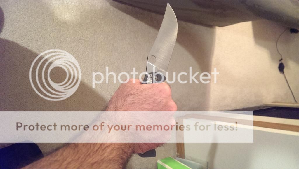 Here's my military that is slowly but surely coming together. It's no tatanka, but it's my biggest folder. I added the swedge a week or so ago, and this by far the pointiest knife I've ever handled. Next up refine the wave a little bit more.