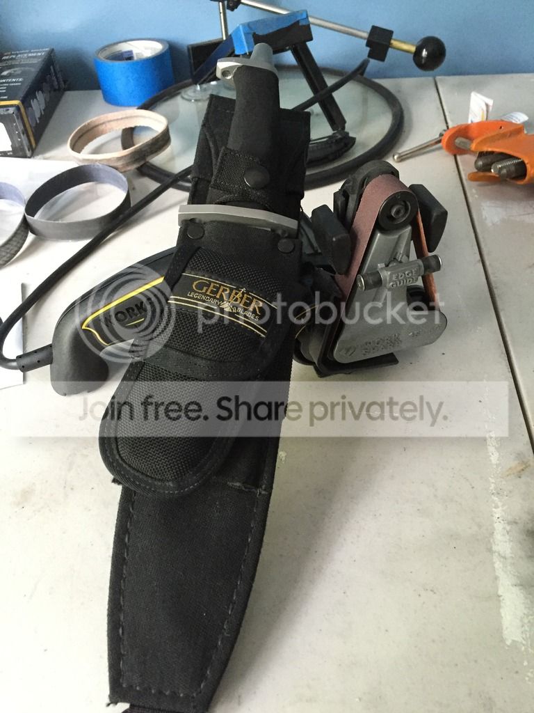 Got to talking to a customer at the Cigar Shop I work at about knives, and he ended up bringing me these today, said he no longer needed or wanted them, all bought new. The Gerber he bought new in around '88. I made darn sure he knew that the BMF wasn't a cheapo, but he insisted and I sure didn't press the matter!