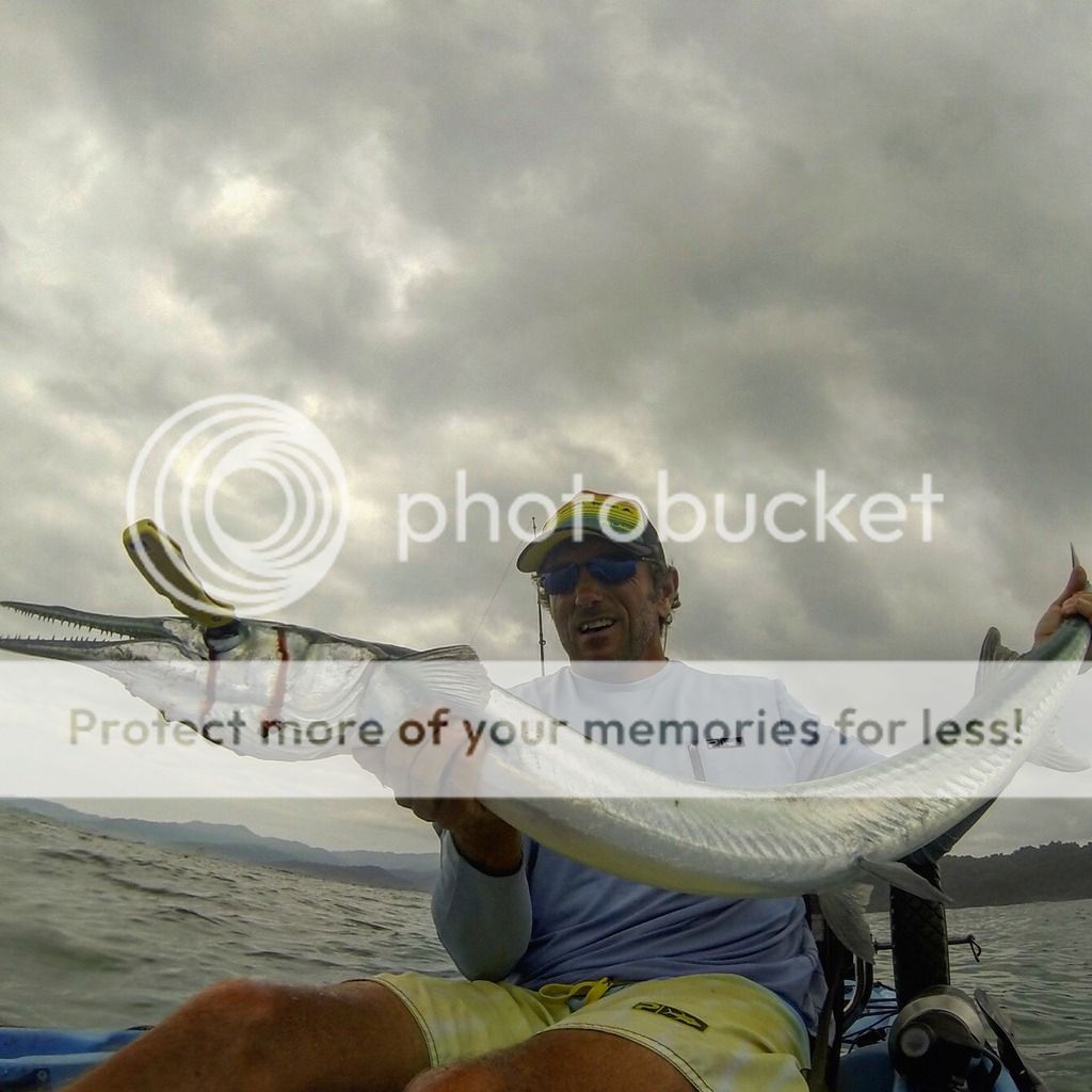 I have a Fish Hunter on the way to Costa Rica now but I could have used it this morning. Landed a big Houndfish and she came to the kayak very hot. These fish are actually pretty dangerous to handle. They thrash around like crazy and can easily leave you with a treble hook embedded in your skin. I've even had them lock onto my leg or hand with those sharp little teeth and had to pry them off with pliers. The worst encounter was when one jumped out of the water at full speed and speared me in the side of the head pushing a treble hook through my scalp with the fish still attached. That was interesting.