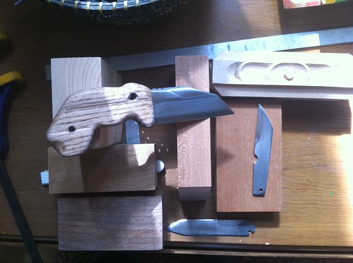 Here's a pic of some of the wood I picked up and a couple of knives and blades in progress