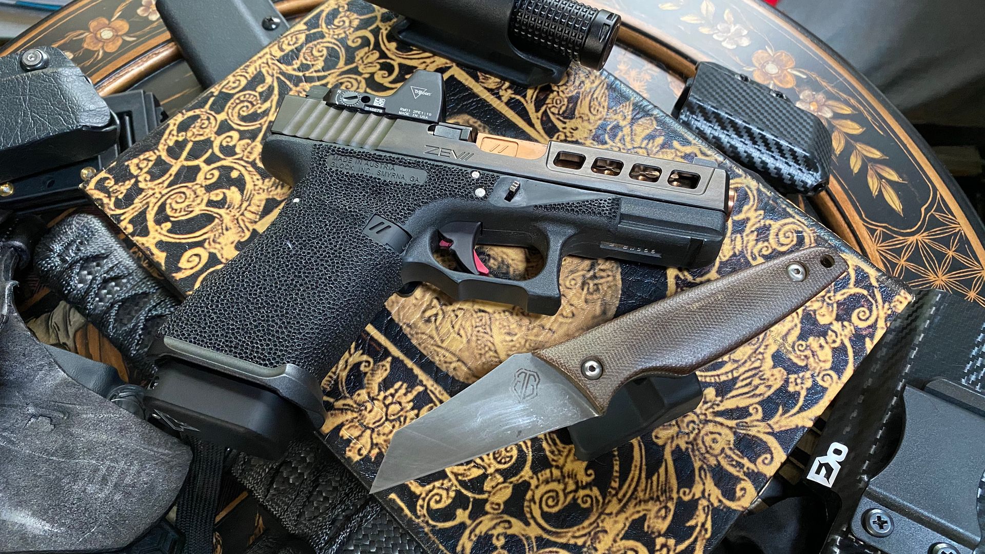 so i snapped a picture of a well worn edc Wharnie from another friends John Gray and asked him to have a go at something similar....shown with my edc a Custom ZEV 19