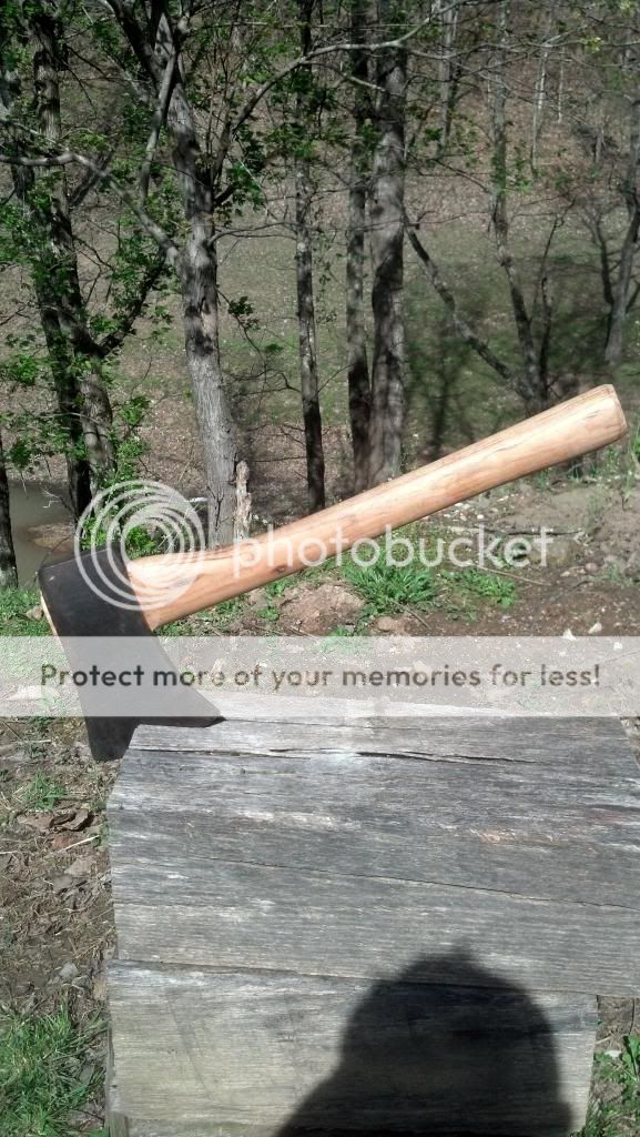 The day I picked up the strange Kelly axe I also bought a short haft because I had never seen one before and was originally going to hang the Kelly on the short haft. But after I read squarepeg's post in another thread about the "mining axe" I decided the short haft would be better suited for it.