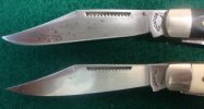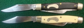 I've found two Imperial Frontier large stockman folders from the same widow via a local pawn shop. The black handled one was his EDC (which his sons didn't want) and the other was an unused "ol ivory" version of the same knife. The EDC has some great patina so I assumed that both knives had carbon blades. I offered the white one up in a trade and the other party wanted to know if it was stainless. I put a magnet to both Frontiers, a known 1095 (GEC), and a stainless Buck folder and they were all magnetic. Neither Frontier has any particular markings on the blade so how can you tell?