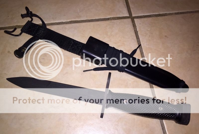 For sale is a perfect new old stock Imperial US M7 bayonet and M10 scabbard. $60 shipped USPS Priority with tracking and insurance. I accept PayPal or USPS money order and can usually ship the same day I receive payment. Please post "I'll take it" and follow up with IM or email. Fits any 20" AR, 14.5" carbine or 16" midlength.