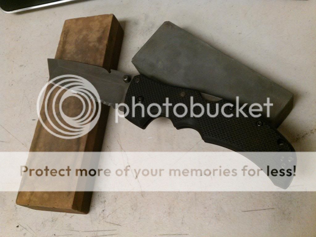 Now that Taiwanese Cold Steel Recon 1 Spear Point is thin ground. I have removed the black whatever paint.