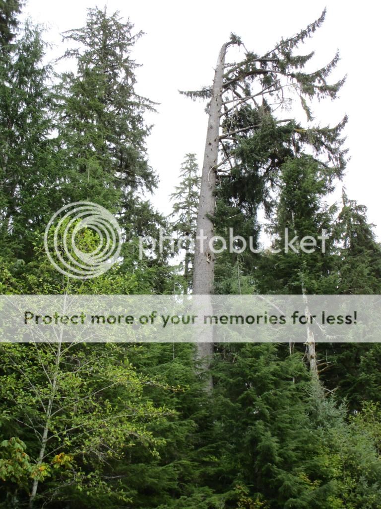 It's hard to imagin' the size of these things, so here's a shot of honey-bun standin' at the base of a big spruce in camp.