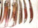 So, here are some photos of a batch of Dinosaur Gem Bone knives I am ready to photograph and sell and the layouts I am preparing for the next group which will be Case Peanuts and another Buck 112.