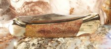 Since I have finished with the Show for this year and decided to not do any summer shows, I have time to do some things I have wanted to try for a long time. I have been keeping all of my nearly work out diamond sanding wheels as the edges are usually the last part that gets worn off. I have been experimenting with ABUSING these wheels to do curves such as that needed to sand stone up into the curve on a Buck 112 Ranger. This is exactly what is needed as it is working perfectly!