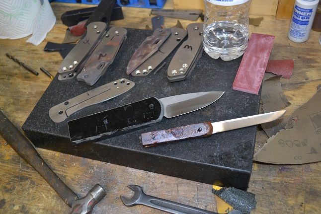 The folders are top priority for the year, look out! I heat treated the CPM D2 blades this week after further finishing.