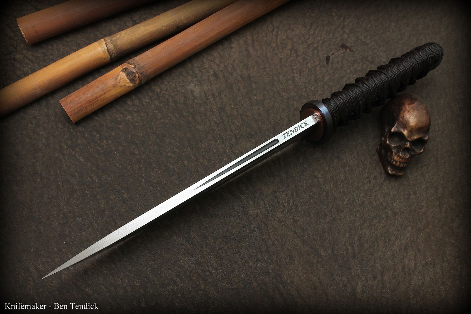 Hey guys! I just finished up one of my Inazuma Tanto's and I am putting it up for grabs. Don't be fooled by it's devilish good looks, this is one all business heavy duty fighter. The blade is .275" thick CPM 3V with my own heat treat including LN Cryo treatment and double temper (thanks to Dan Keffeler for pointers). It is flat ground and has a needle sharp point.