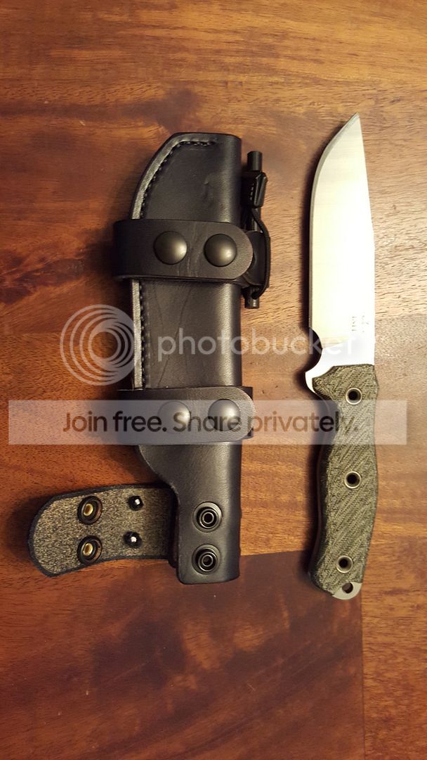 First up is the swamp rat Infidu. Black Micarta. This one has never been used but it has been sharpened on the wicked edge and thinned out a bit. It was a butter knife when u received it. It comes with a black Patriot leather sheath. I won't sell the knife without the sheath, however if you want just the sheath, let me know. Price with sheath is going to be $370SOLD I pay fees and shipping.