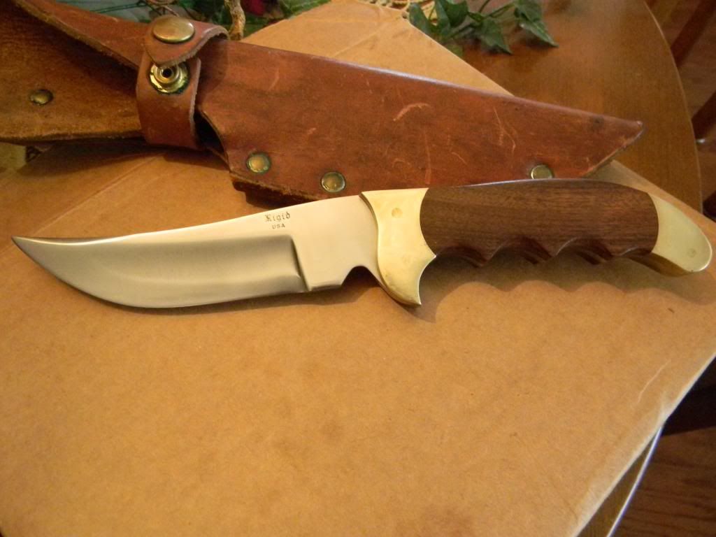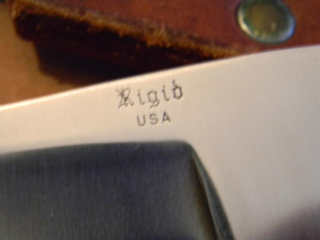 I have a Puma Buddy 6383 made in Q3 of 1967 that is in real nice condition, although there are some marks (either light cutting or light sharpening) on the blade, but it does not show very much on the knife. It actually looks much worse in these photos. My main question is when did they start to make the Puma Buddy exactly, if anyone knows? Also, any other neat tid bits of info about the knife would be greatly appreciated. Next is a absolutely new condition Rigid. I have been told, and through my research, have come up with it being a Sidewinder. The knife itself is pristine, the blade has never cut anything, and the handle is perfect. The sheath is about a 8 out of 10. There is a 3/16-14 cut along the back side of that I put in there when I was a about 8 or 9 years old, and not permitted to touch the my fathers knives, and I put it in the sheath the wrong way. When it would not go, I panicked and forced it, and slit the sheath. Needless to say, i got justly pumished for my mistake,and for the lie of saying " I did not do it" lol. Again, any information on these old Rigid knives would be aprecciated. I once heard that these early Rigid knives were some Buck Knife employees, experimenting with some designs that they wanted to try and promote on their own. Whether true or not I don't know. Whatever you have I would like to know. I attatched a couple pics, if anyone wants more just let me know. My email is bones0831@aol.com. Thanks.
