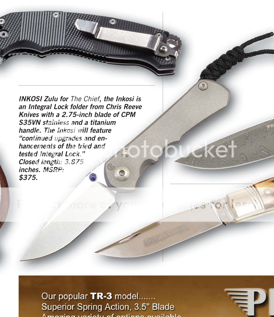" INKOSI is Zulu for "The Chief". It has a 2.75" blade of CPM S35VN in a titanium handle. Closed length 3.875". MSRP $375."