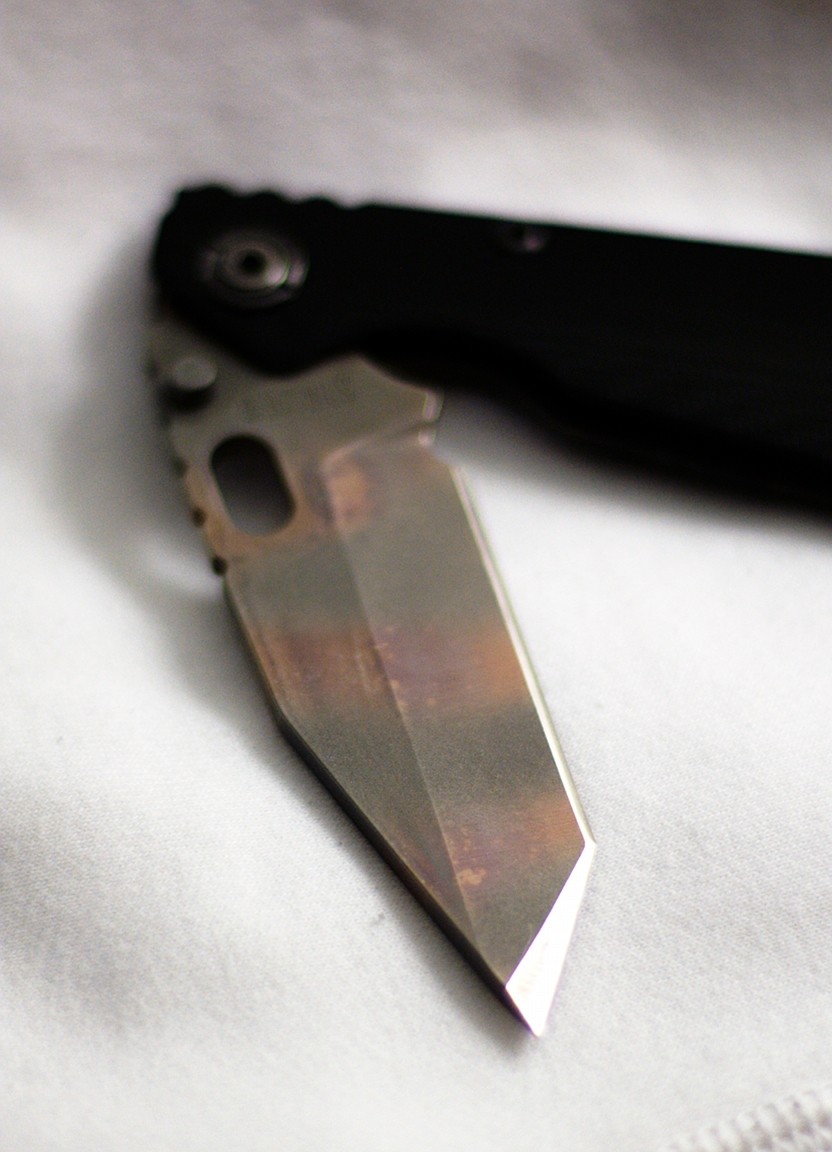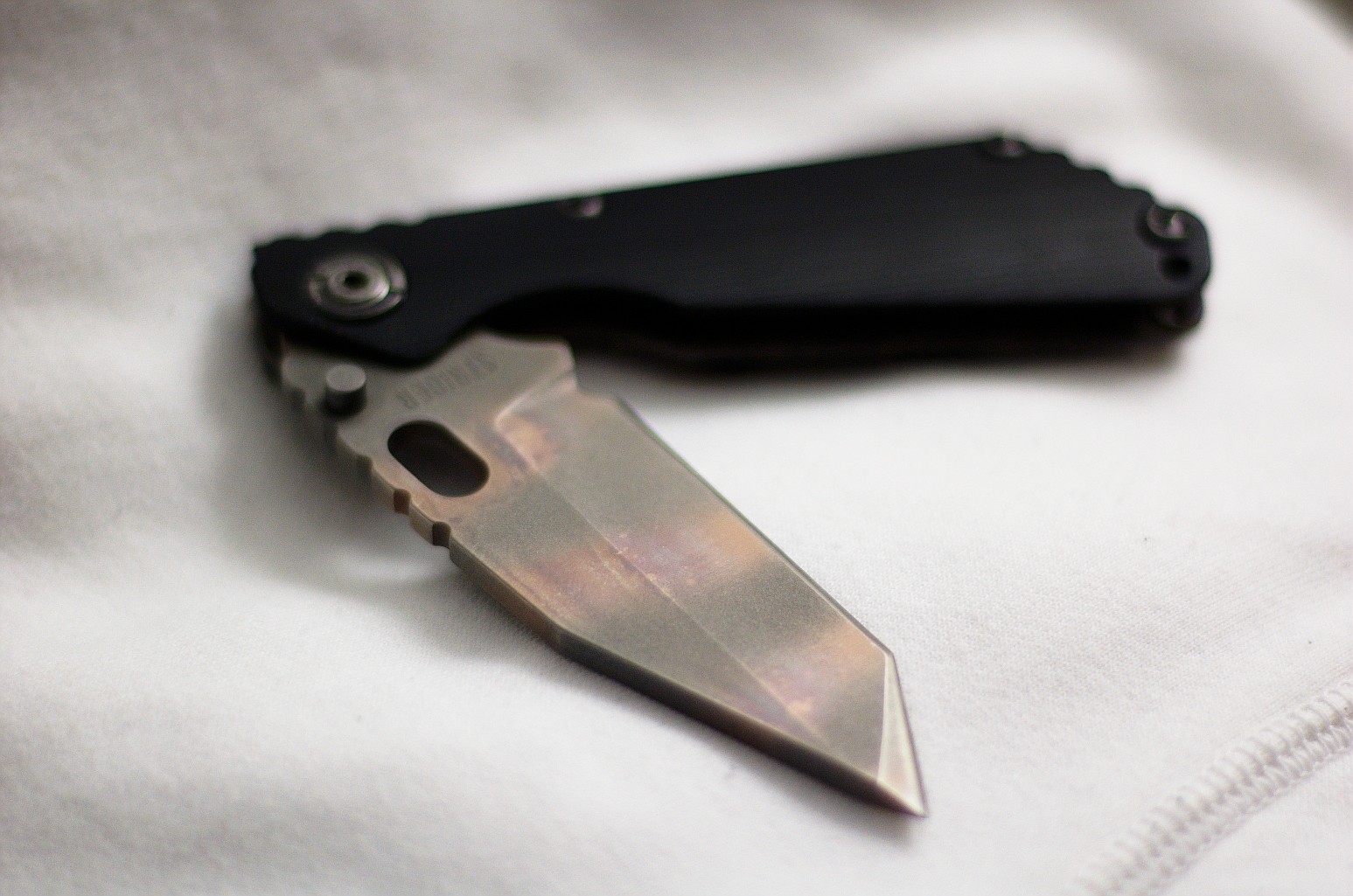 I am aware that some Strider heat treats have a red hue, like the ones that are BG42 and/or ATS-34 from back in the day. I used to own a few of those. But that was many many years ago, I am doubting that this blade is BG42.