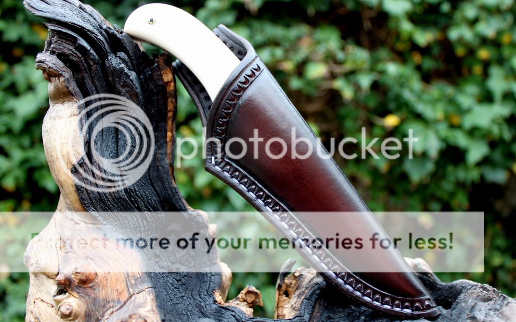 Sheath: Hand Tooled, Hand Stitched, Right Handed, 9 oz. Leather