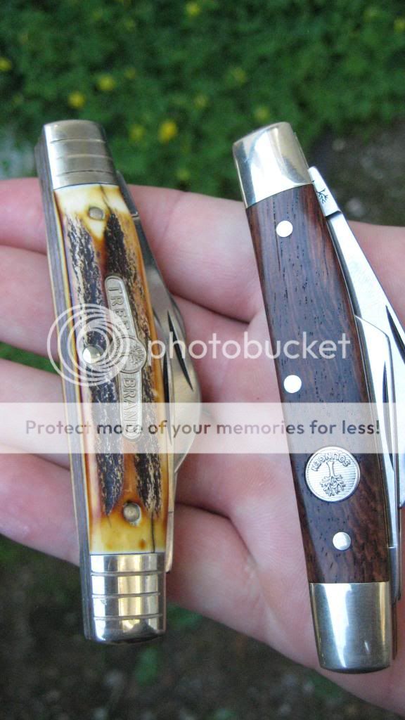 I really like these two knives. The F&F on each is just great no gaps, blade wobbling or whatever. The wood on the one is really great looking as well as the stag on the other one. Really a classy pattern!!