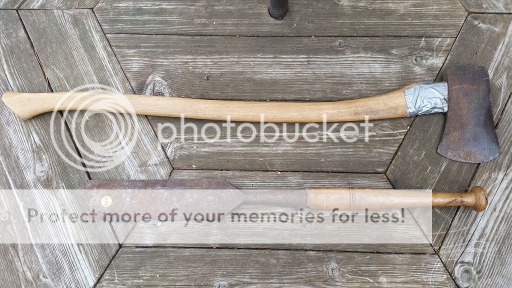A nice unmarked claw hatchet, a Plumb house axe, an upside down TT Kelly Works World's Finest Connie and a near perfect full sized Norlund. I was charged $5/each for the first 3 and $30 for the Norlund. Bargains all.