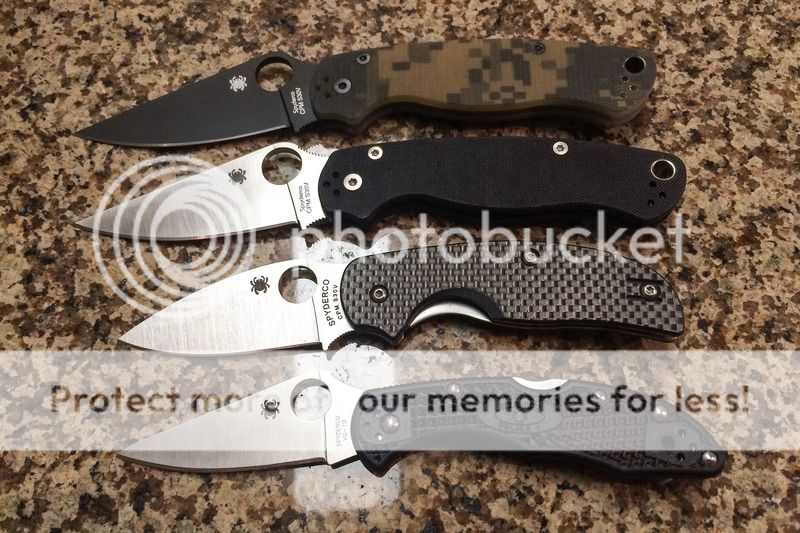 When 2015 started, I didn't own a single Spyderco knife. In Febuary, I picked up a Delica 4. Carried it daily for a couple of months and the sickness started. Picked up a Sage 1 for a dressier knife and then decided I had to have a PM2- after reading how much people love them. I couldn't decide on a color for the PM2, so I just bought the two color schemes I liked best. Lol. I need to stop hanging out with you guys...