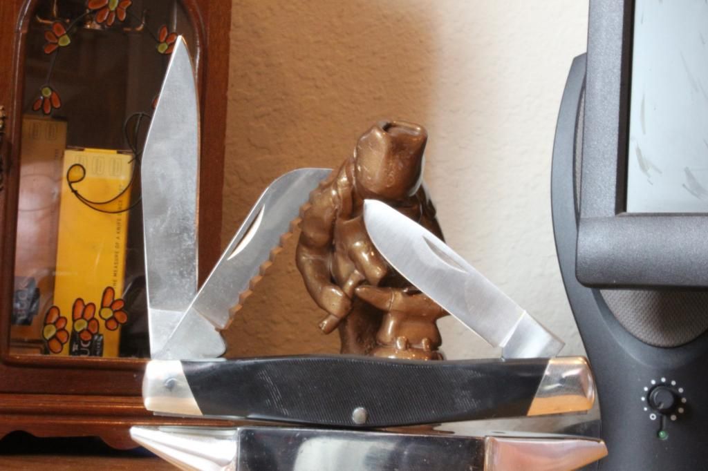 My one and only 301. I hadn't really liked how the spey's factory tip was exposed above the liners. So, I ground the spey's tip to more of a spearpoint profile from the spine side. Now the tip nestles neatly within the liners. Also thinned out the edge grinds to improve slicing performance. I've now officially made it my own.