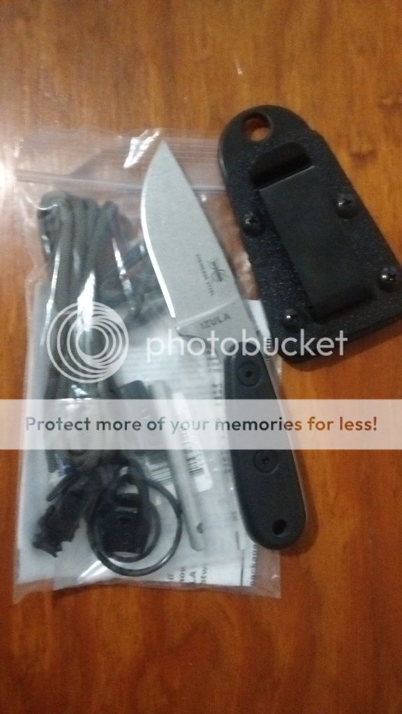 Catch and release. I purchased this from another member NIB. Has been opened, and put the handles on the blade then the clip plate on the sheath. It hasn't been carried or used. It's just a little too small for me. This is the stainless steel Izula with complete kit and G10 scales. $SPF paypal and lower 48 only. Open to trades.