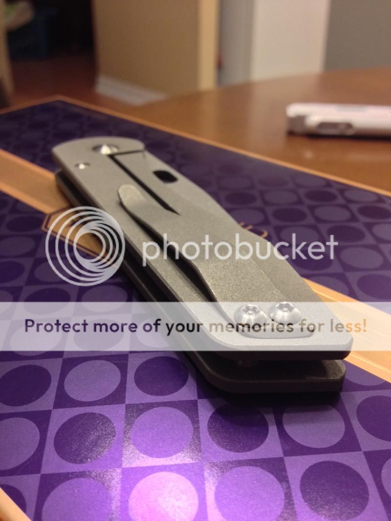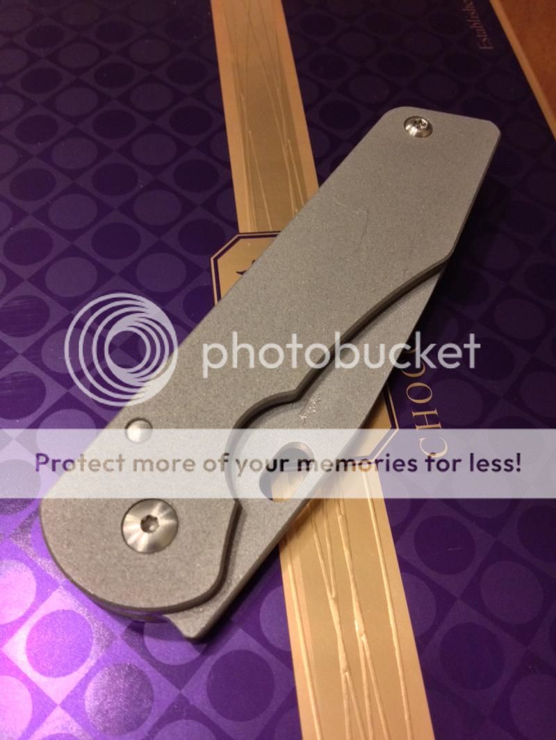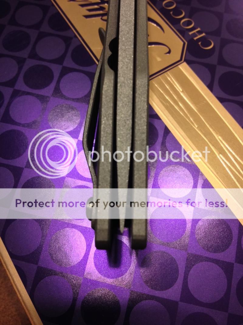 The handles and the blade is bead blasted, and feels extremely comfortable in hand. There is a slight recurve to the blade, and the tip of the blade is very stout. The action is smooth, and the blade is on teflon washers. The spine of the blade is comfortably rounded (similar to a Sebenza) near the pivot, and then flat towards the tip.