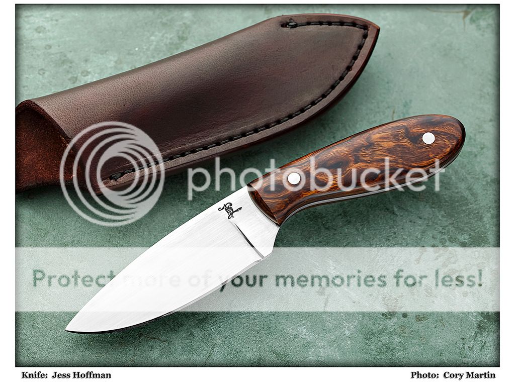 This is a little 3-Finger hunter I finished recently. The blade is 1/8" N690 stainless steel and the handle is gorgeous Ironwood Burl. The leather sheath was handcrafted with Wickett & Craig leather. This knife is very comfortable with a 3-Finger grip, it's like an extension of your index finger.
