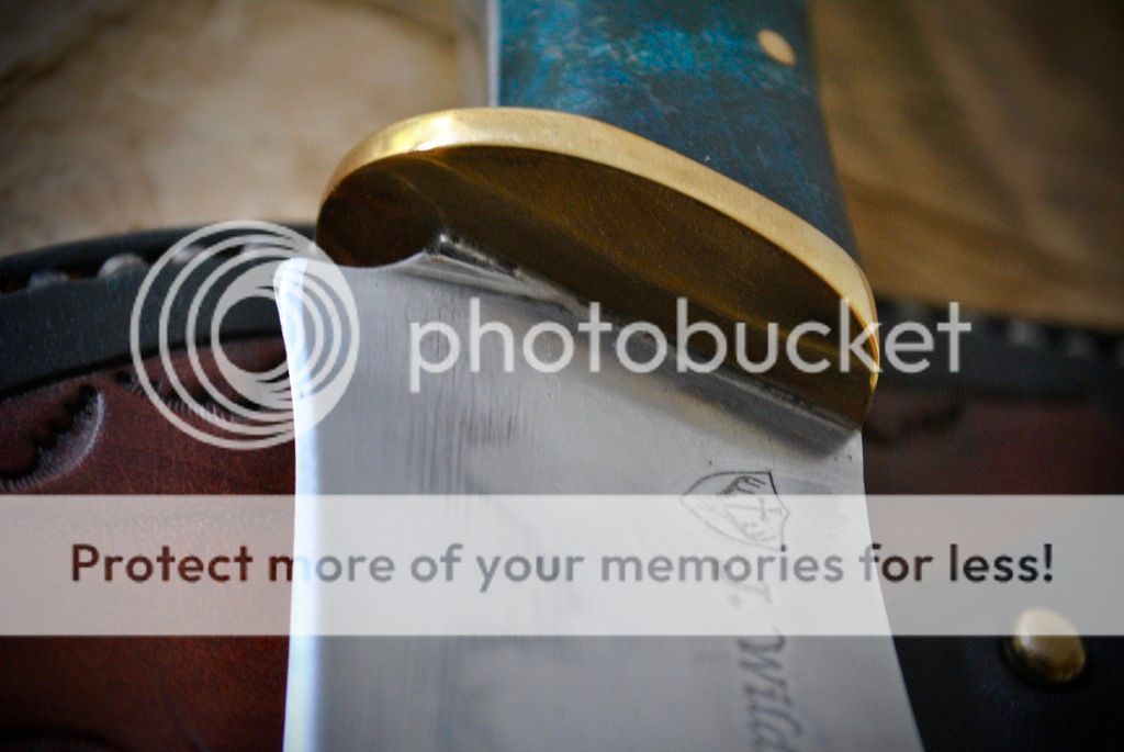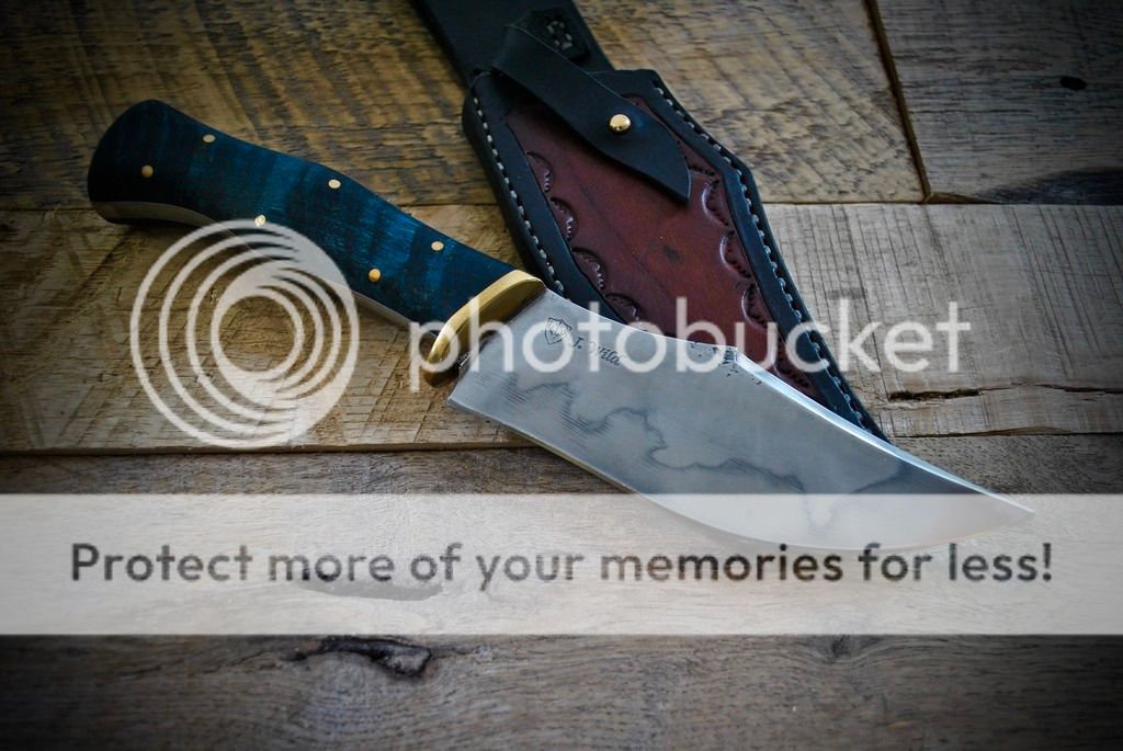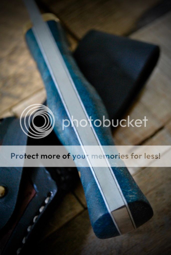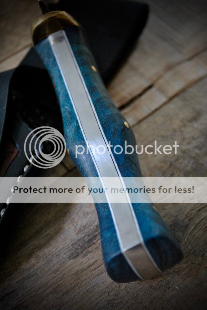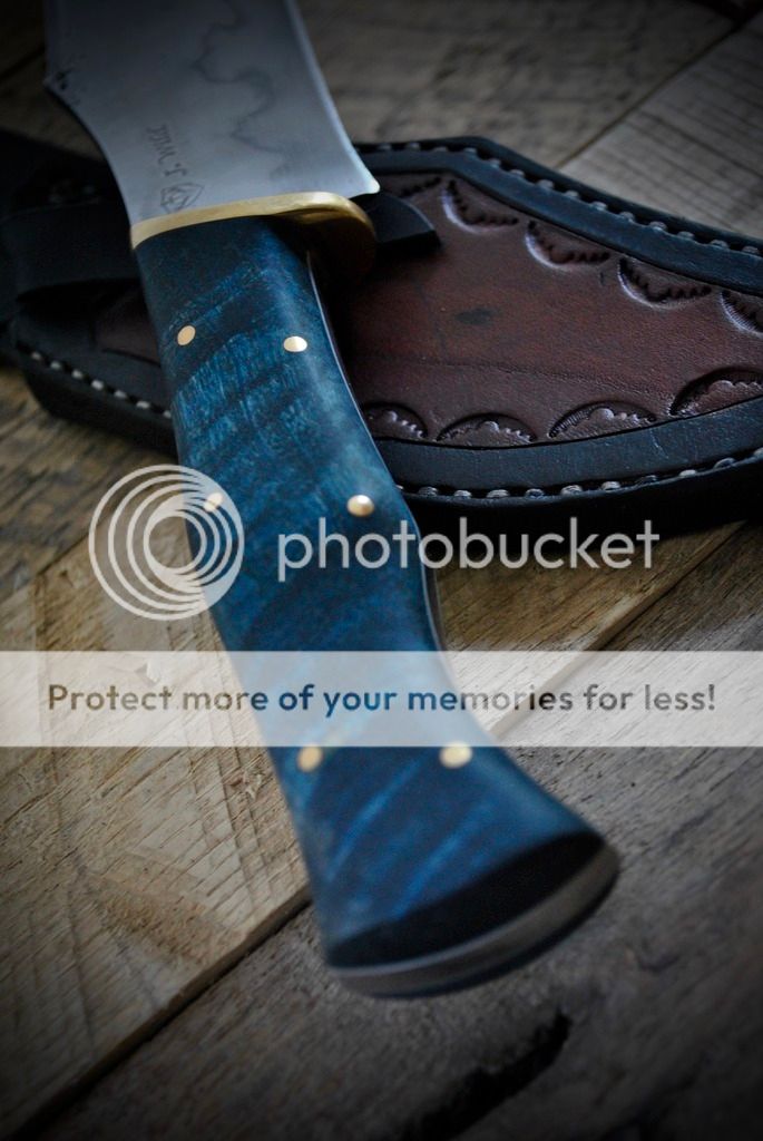 Strikingly beautiful blue stabilized sugar maple handle scales and unique hamon make this knife stand out! a full tang construction with a 1/4" blade thickness makes this knife a beast!