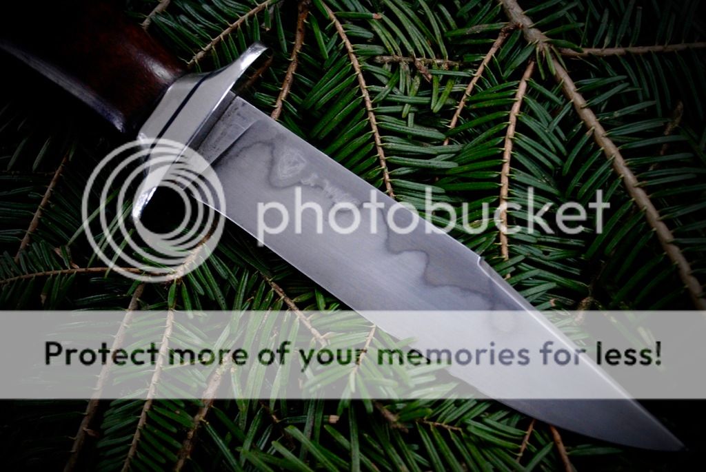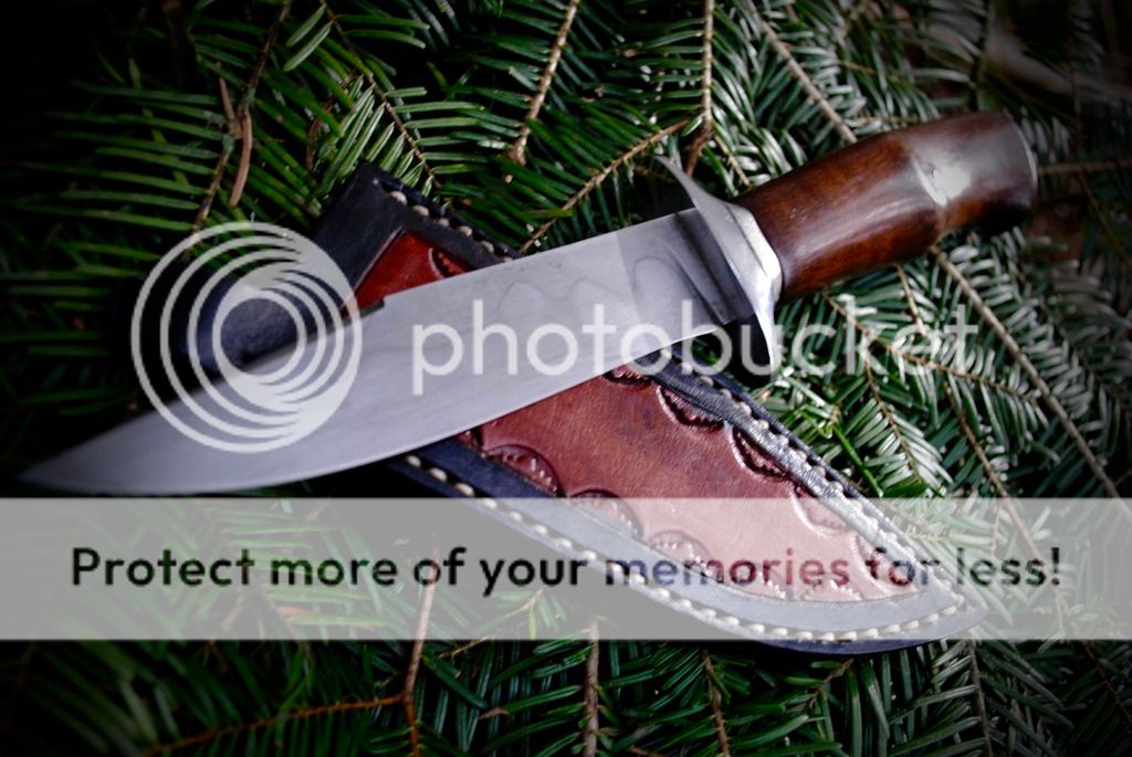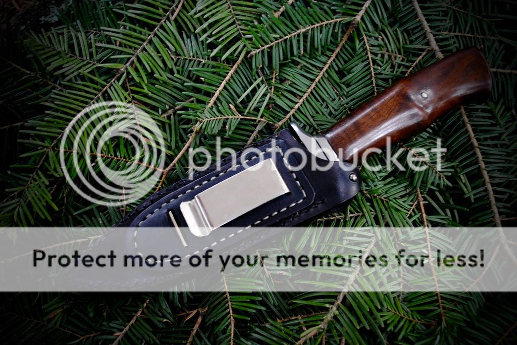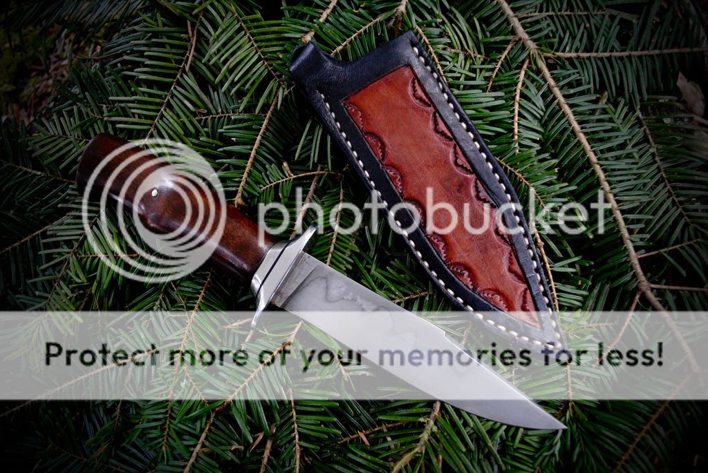 My latest up for sale is a slim bladed fighter with a ergonomic walnut handle and stainless guard. A sheath right handed leather sheath with a belt/boot clip is included.
