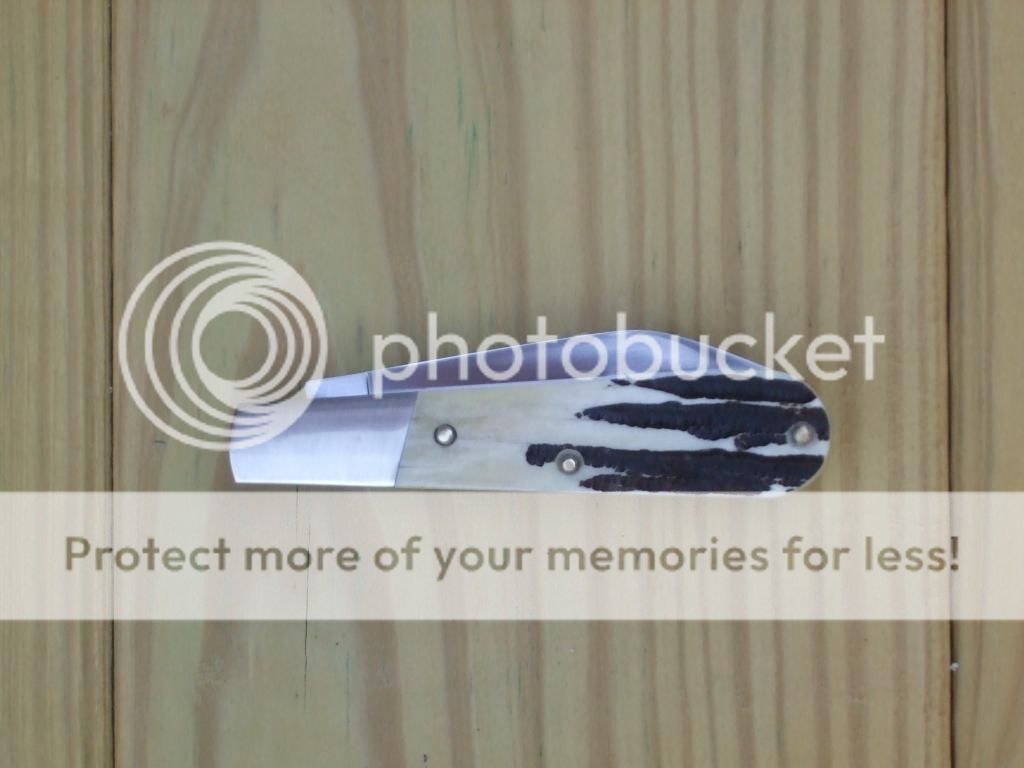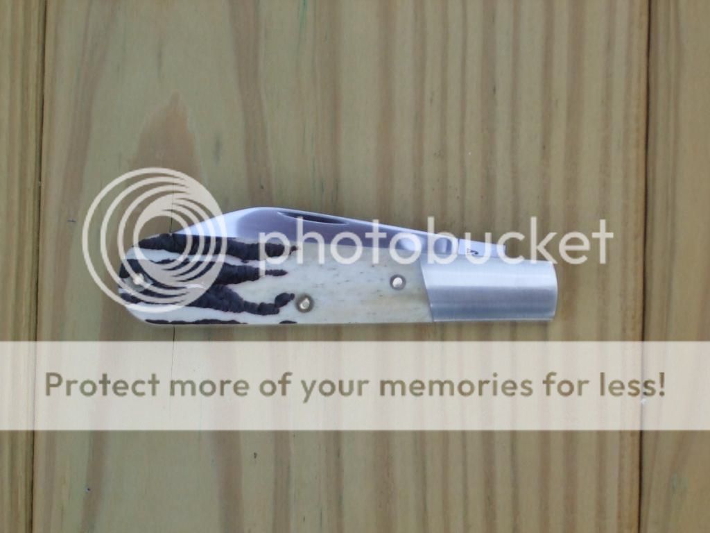 My only comment, and it's just that, is the stag bone. I would try to leave more of the "bark" on the stag bone. Alot of people like that contrast of the bark to the smoothness of the bone. Were it me, (and it isn't) I would take the material off the inside, and leave as much of the bark on the outside, with as small of a taper where the bolster meets as looks good.