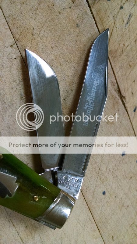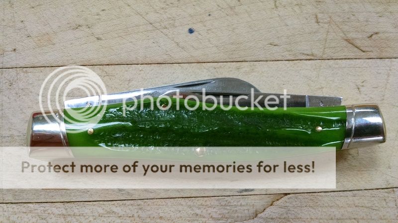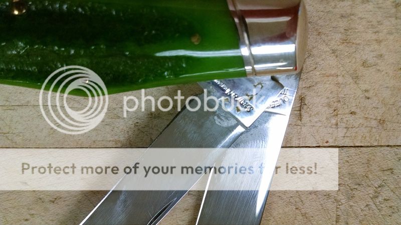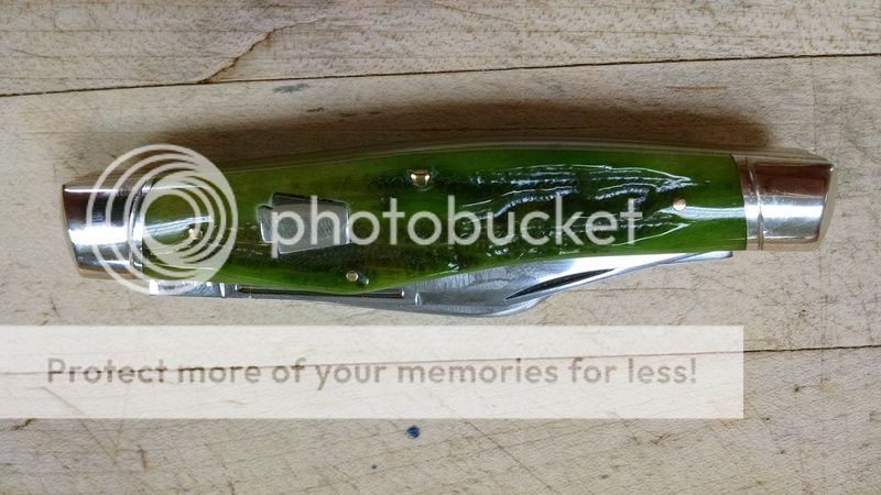 Beautiful S&M Reverse Gunstock with deep jigged Jade covers. Blades are tight with strong snap.
