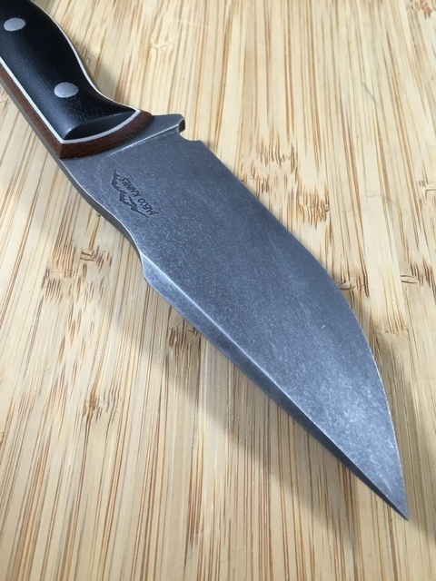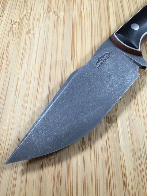 * .187" 154cm stainless steel. 59/60rhc. Heat treating is done in house. I've tested numerous times with a Rockwell gauge at the local community college where I learned machining.