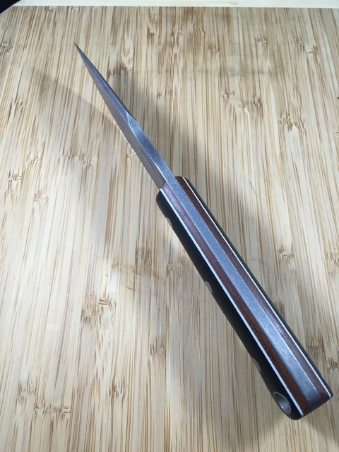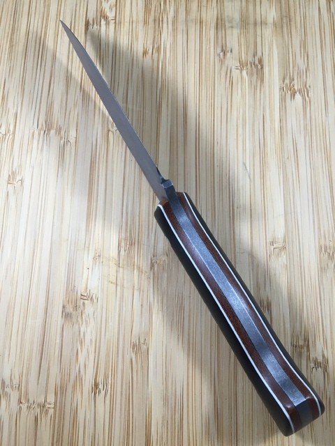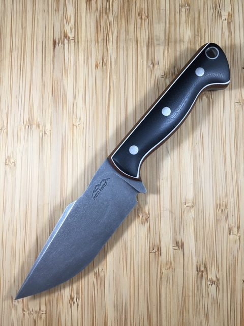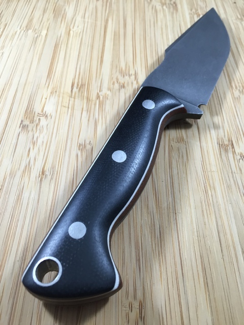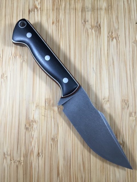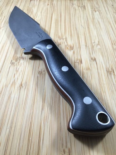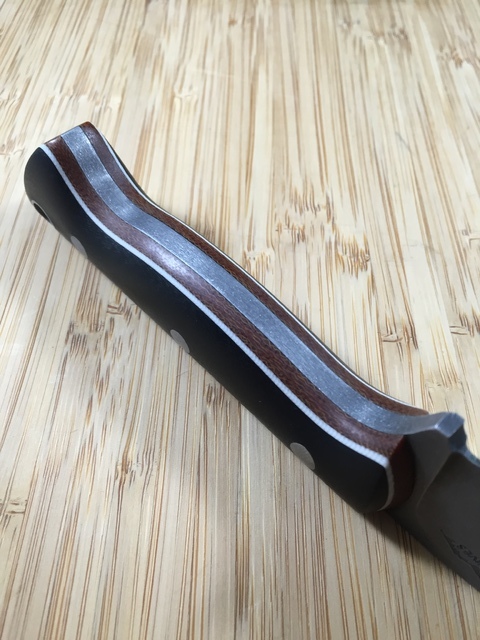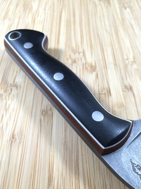 * Black G10 handle scales over natural canvas micarta with white G10 liners.