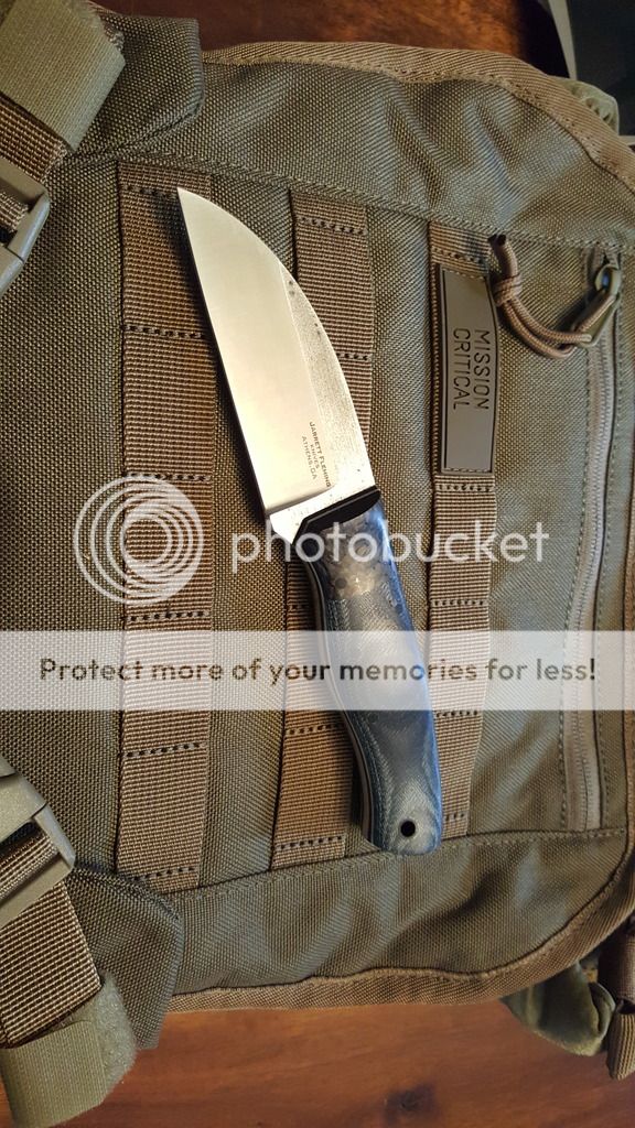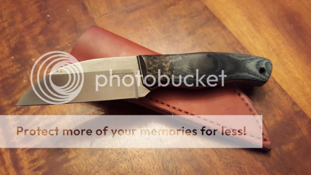 Up for sale is a new and unused Talus. Jarrett is a great custom maker from Georgia and has his own subforum here on Bf. This one is CPM154 and wearing bluejean Micarta, carbon fiber bolsters and sweet white pin stripes. Comes with a leather Sheath.