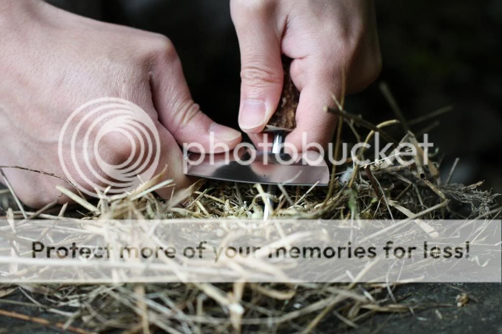 Here are photos of it in use - my 6-year old took the action photos for me! Sorry, not many photos of the knife - I actually put this together for a bushcraft forum.