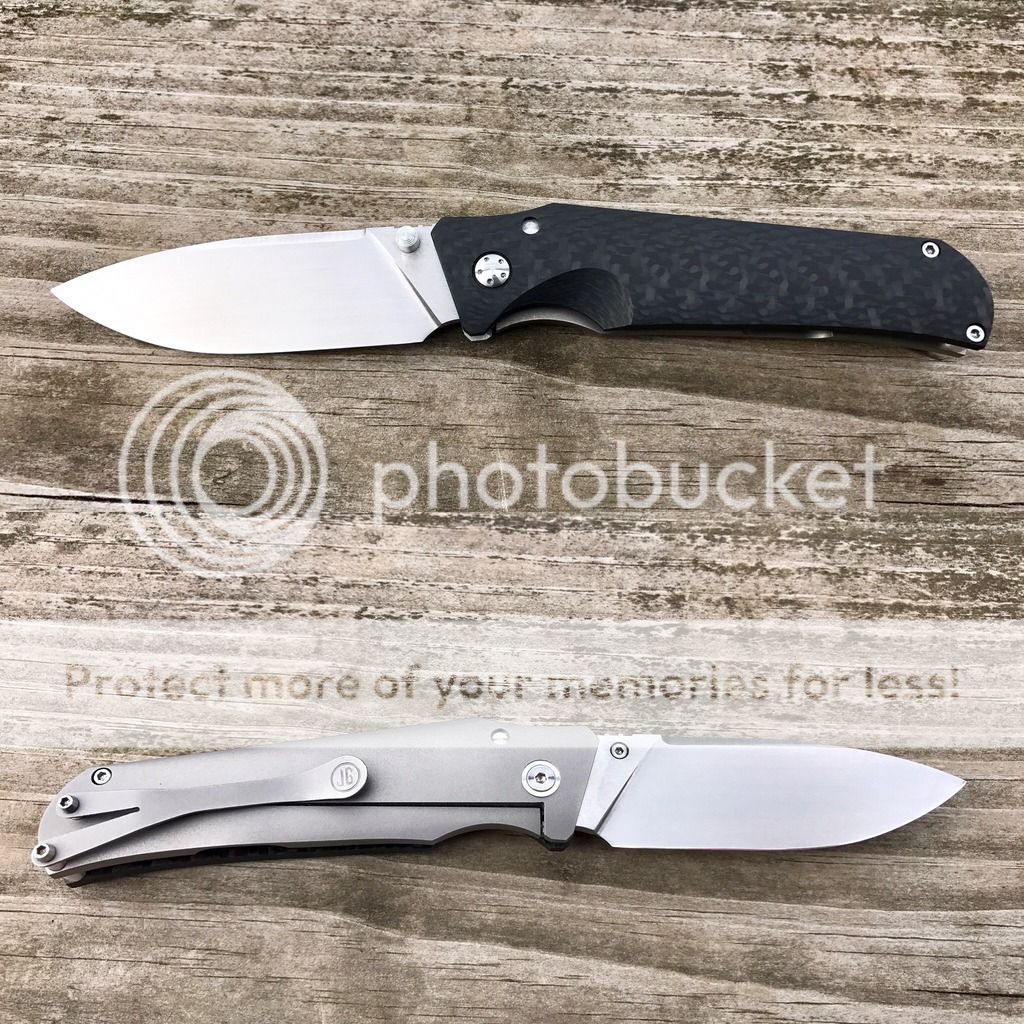 Classic drop point with copper lightning strike CF. Centering and GTI lockup are perfect. Blade is mint and razor sharp. I haven't seen very many LSCF JG's. This one is lightweight and beautiful.