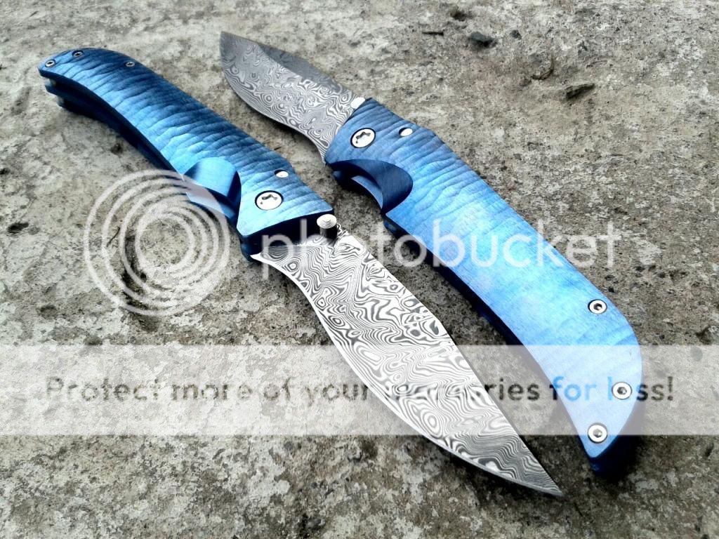 Here is his most recent Ranger with recurve bowie blade and full Ti handles (with stone finish and bronze anodization):