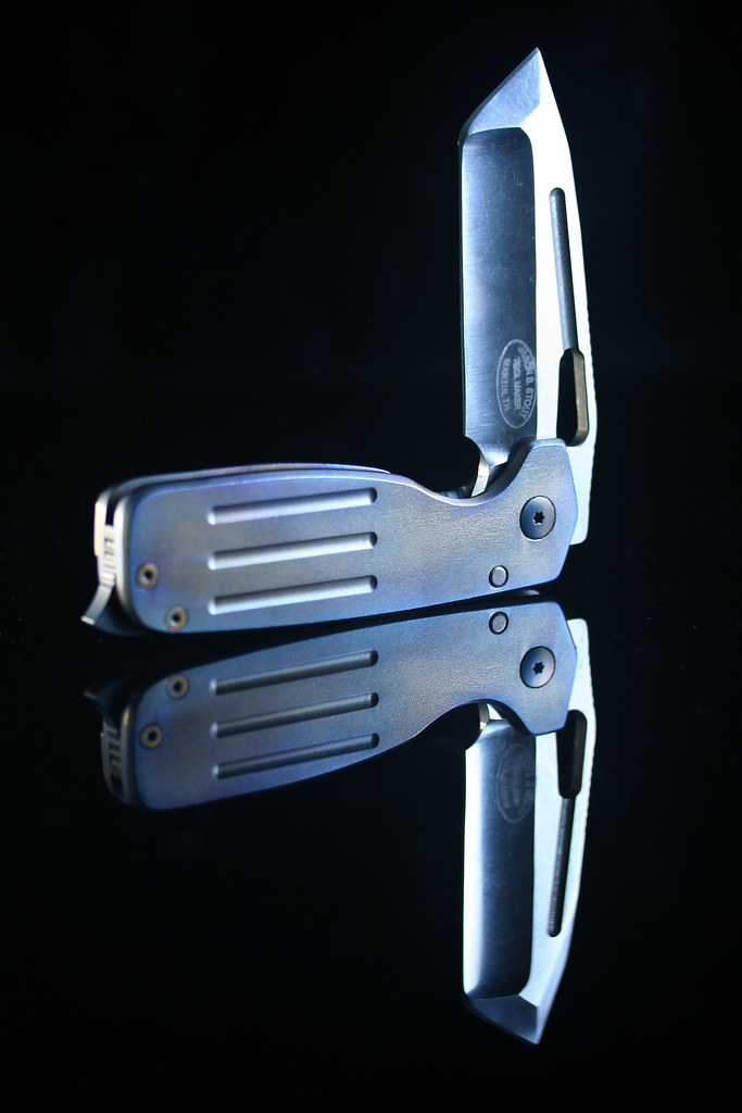 The blue ano flame job looks great. subtle but it still pops. The mill work on the top of the blade and backspacer really makes it special.