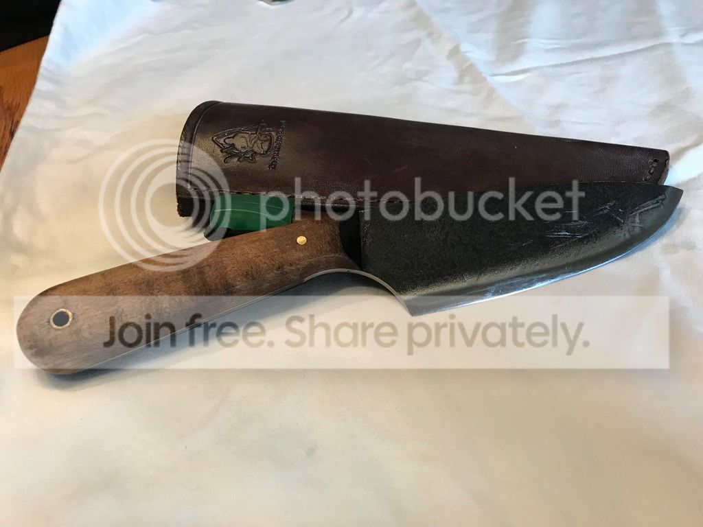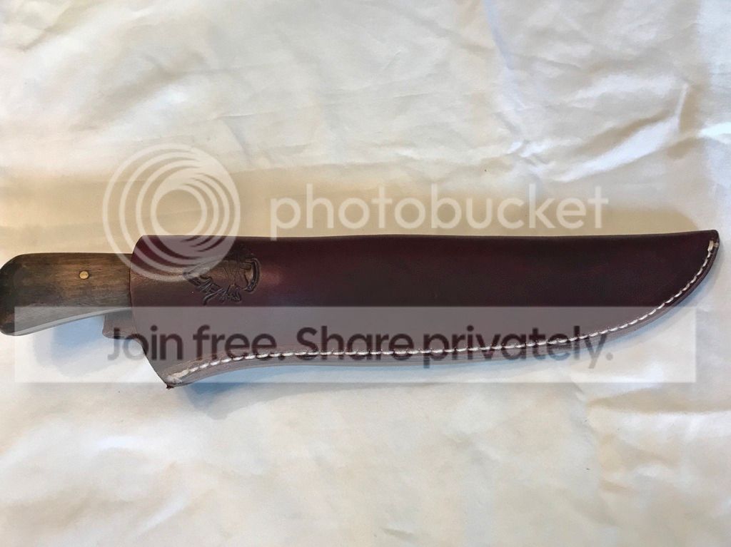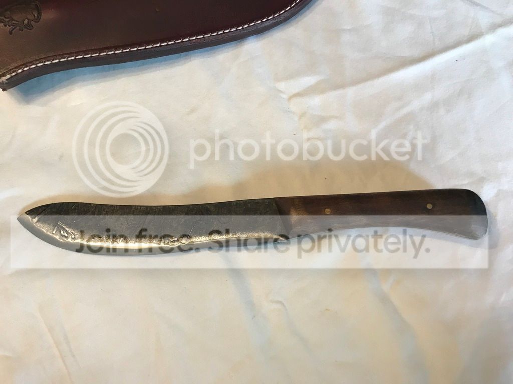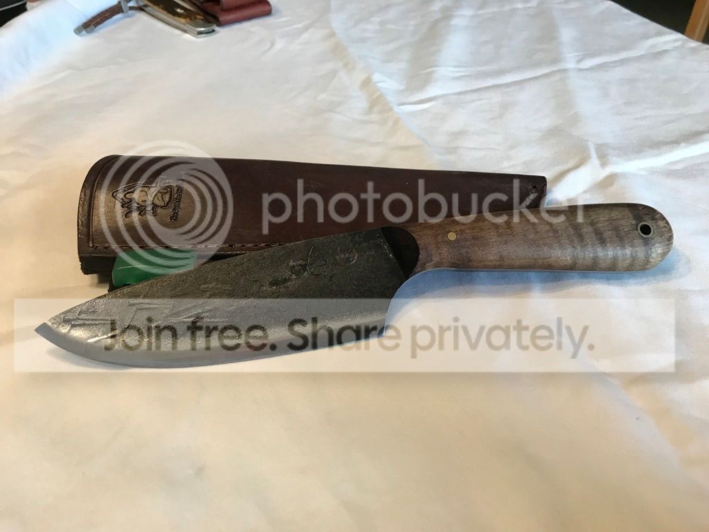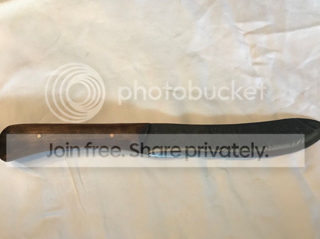 Hello, I have a couple of Jeff White Pathfinder knives for sale. The Pathfinder Bush Knife was purchased off the forum. Knife does have a couple spot of lacquer next to stamp on blade. I will post link to original sale. The second knife was purchased from pathfinder school. It is a butcher knife designed as a copy of Dave Canterbury