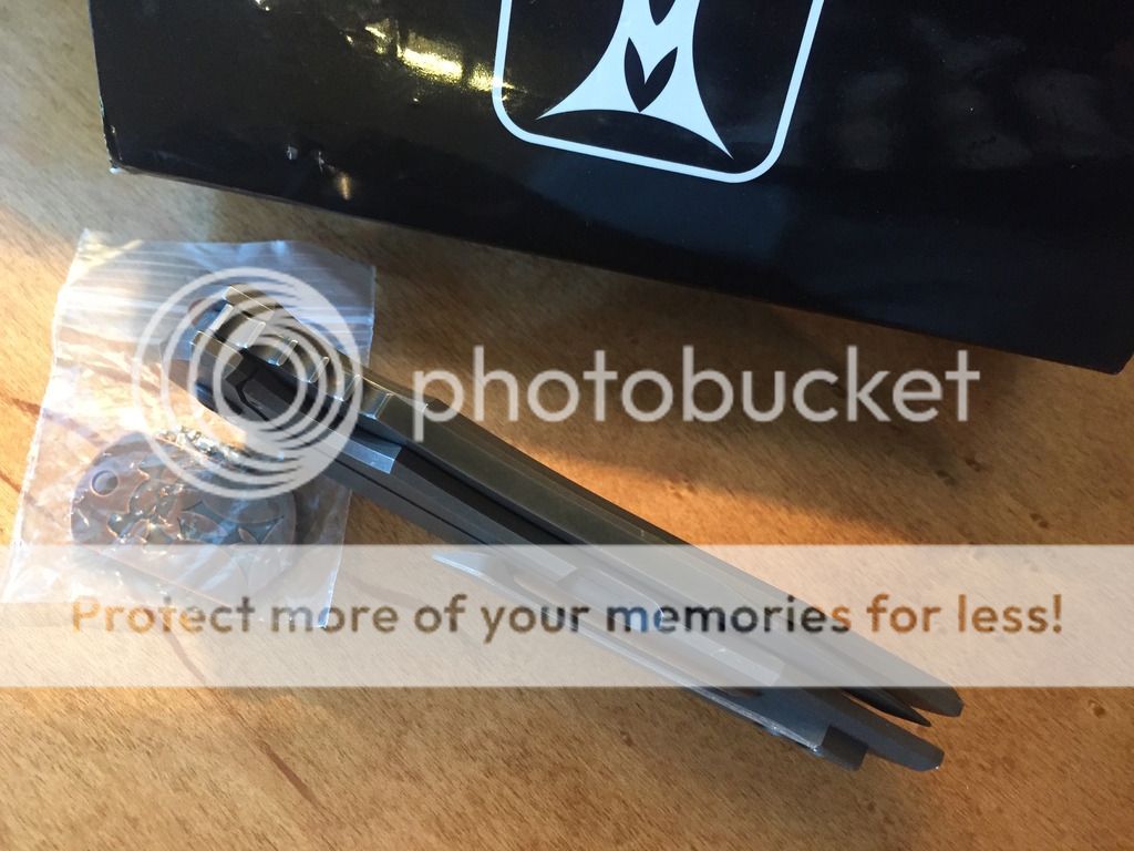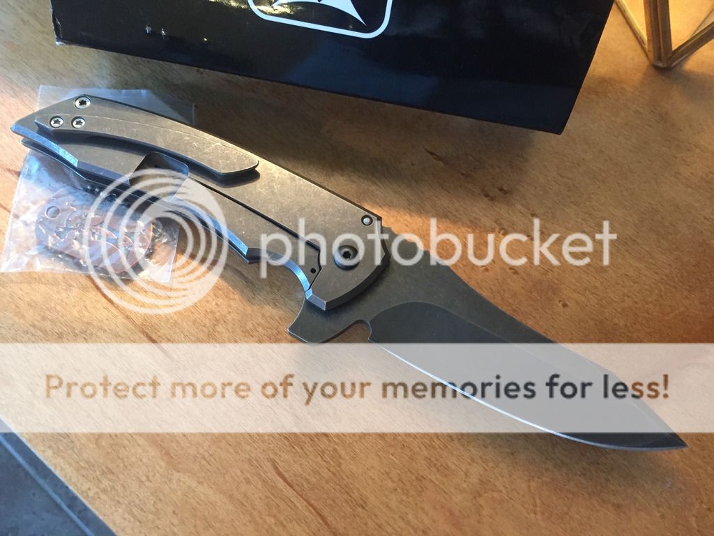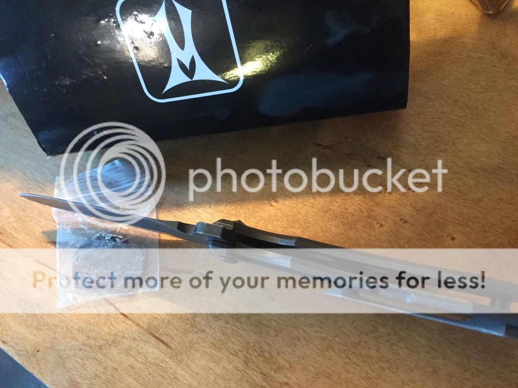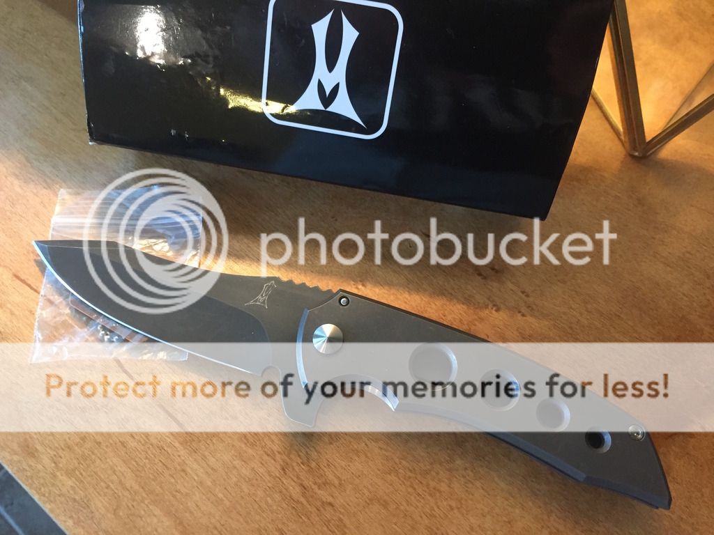 This MAC Roxstar (Marsh Almost Custom) by Jeremy Marsh features a hand ground, tumble finished blade with notched thumbrest and flipper. The handle has a anodized/natural washed titanium frame with matching tip up clip. Comes with original box. #51 is scribed inside the frame and also on the box. Nice detent, lockup and blade seating. Knife is in excellent condition.