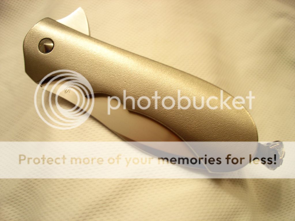 This incredible full custom knife features a very thick, perfectly orange peel textured titanium frame with a wickedly ground, hand rubbed Elmax blade.
