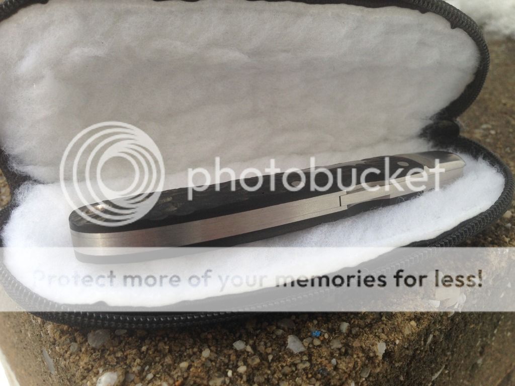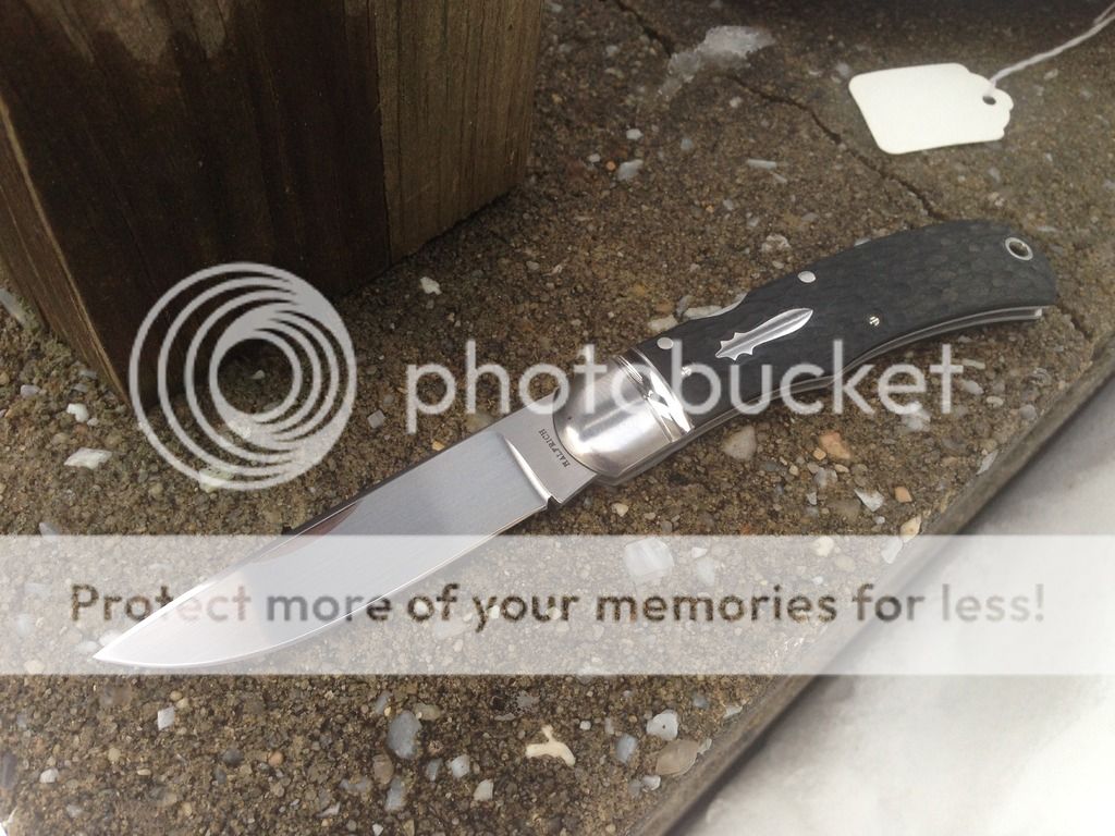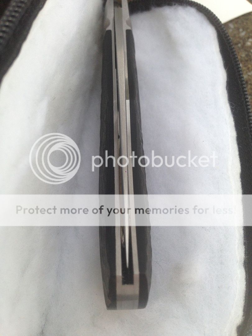 The person I purchased this knife from said it was light carry and use only. The blade sits dead center and looks unused but there are some light swirl marks on the bolster (tried to capture with photos but really struggled to get them to show up). The knife is crazy smooth and locks with a crisp snap. I am a bit of a blade-play snob, the lockup is solid with zero up and down blade play but I would say it has very slight side to side play. I believe the person that sold me the knife bought it direct from Jerry at around $900. It is a work of art and I was lucky enough to get it for a great price and I am going to sell it for that same amount.
