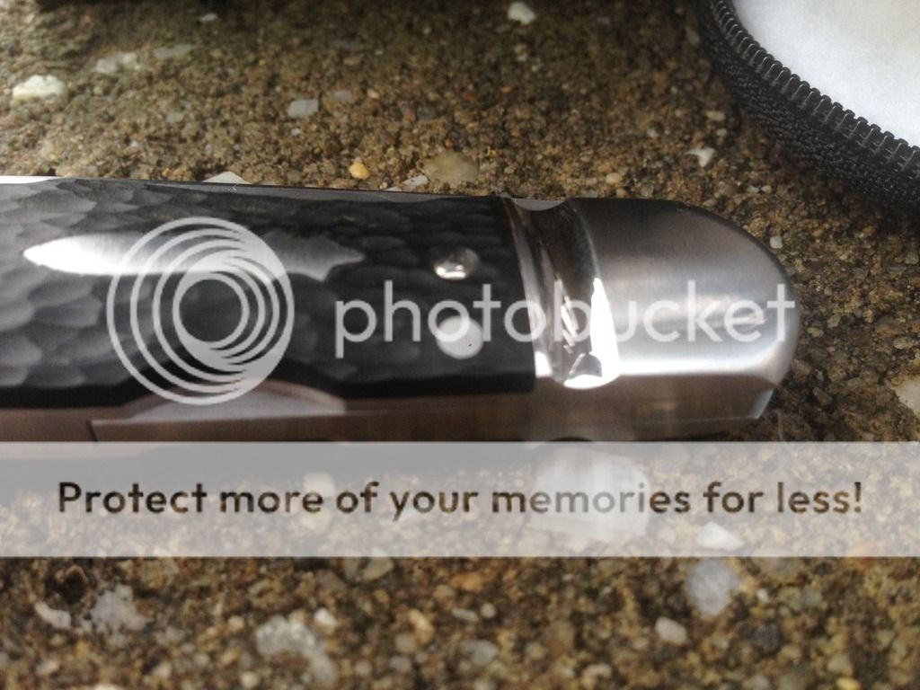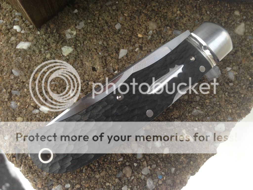 I am the second owner of the knife and I have not carried, used, or sharpened it. It has jigged black paper micarta scales, flush federal shield, and rounded and fluted bolsters.