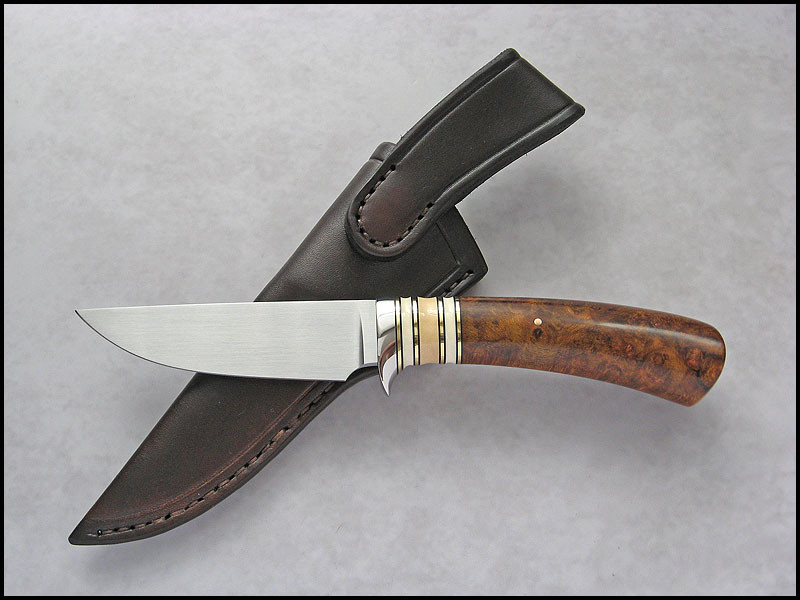 Bona The Art of Harmony Feedback: +31 / =0 / -0 Joined Apr 27, 2006 Messages 1,158 Feb 23, 2016 #1 Another Jerry for sale. steel N690 / 3.5 mm [0.138"] length 218 mm [8.583"] blade 103 mm [4.055"] handle stainless steel, black fiber, brass, mammoth ivory, dyed and stabilized Maple burl, bronze pin sheath leather Price - 375 USD SOLD Included International Priority Mail Last edited: Feb 24, 2016