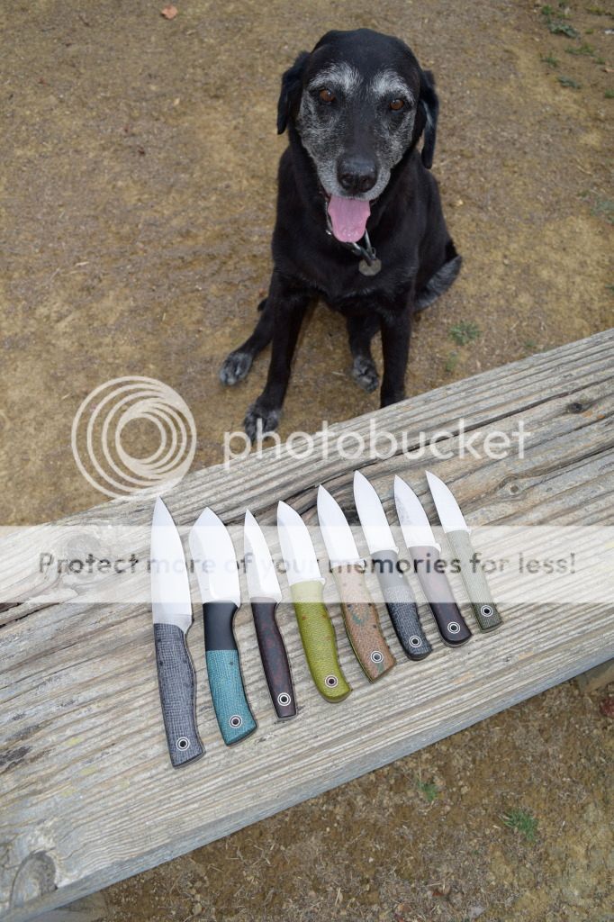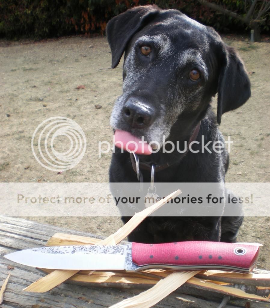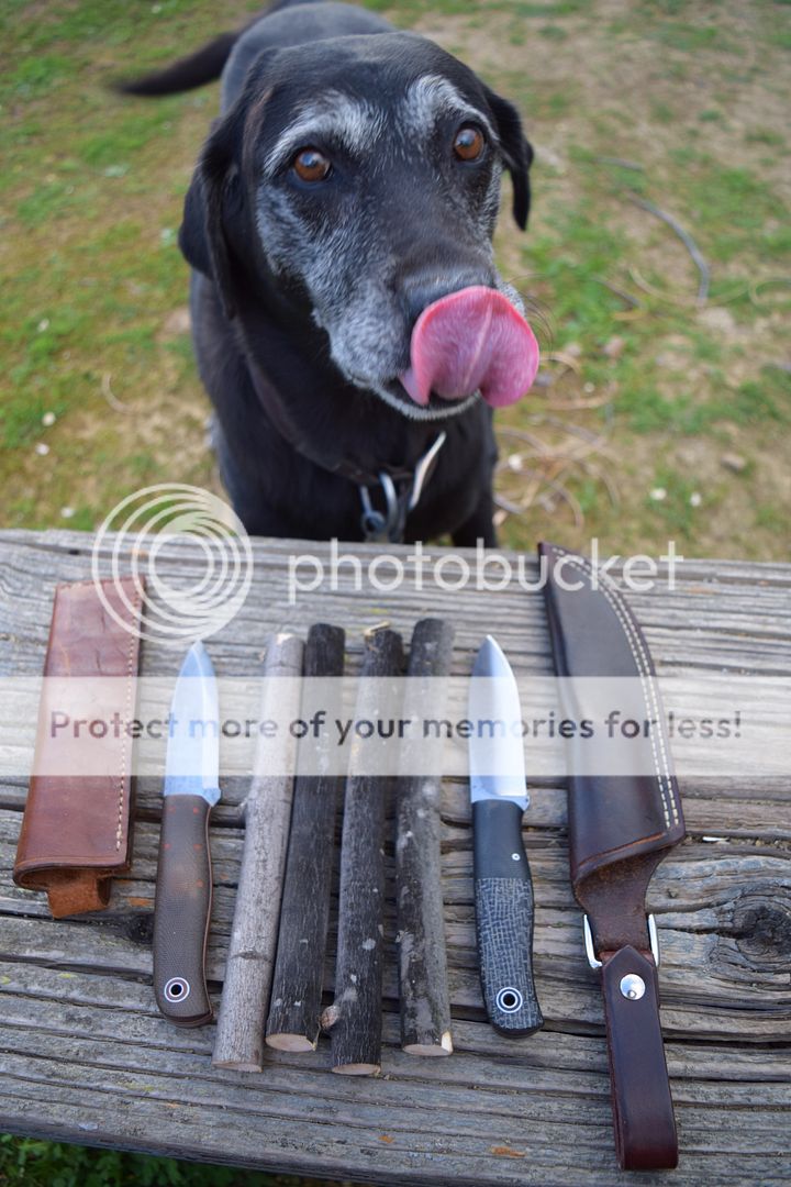 She loved to sniff and study all the knives with their colorful handles. She would watch with curiosity when I was splitting wood or carving notches. Of course her favorite part of any post we worked on together was when I would use the knife to baton through some meat or cheese that she could eat.