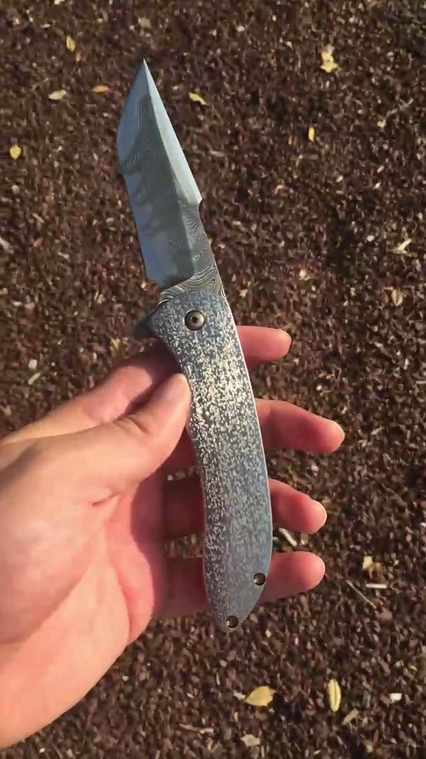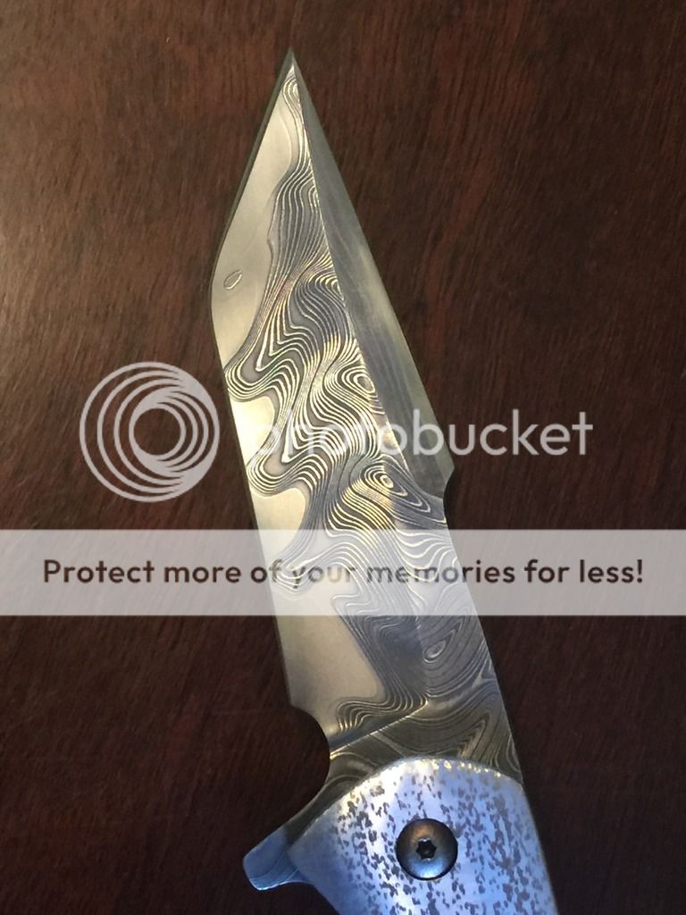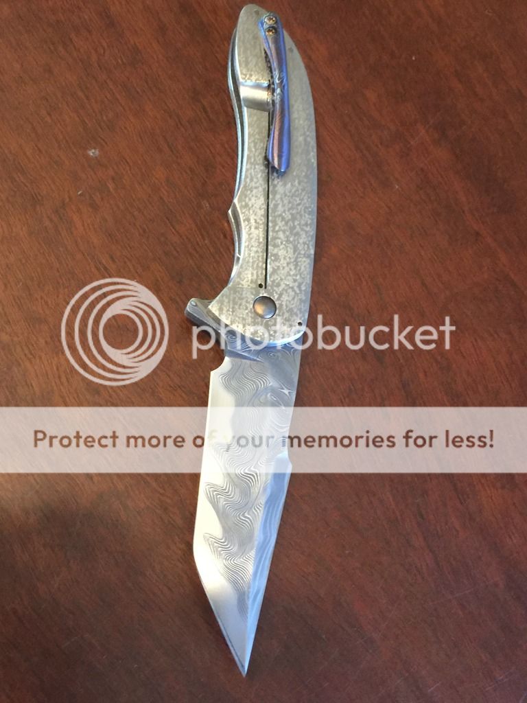 Picked this up recently online. Beautiful blade. There is a slight bit of rub on the bottom of one side of the handle. I tried to show it in the pic ( 7th pic down) but it was hard to photograph. It is on the side of the scale by in between the pocket clip and the backspacer. Also some mark where the blade locks up against the lockbar but with the speed this thing fires at there really is no way to avoid that. Early lock up. This thing fires HARD. The action is really incredible. This was really hard to photograph on an iphone so sorry for the bad pics. Here is a link to some Better ones from JI Knives Instagram.