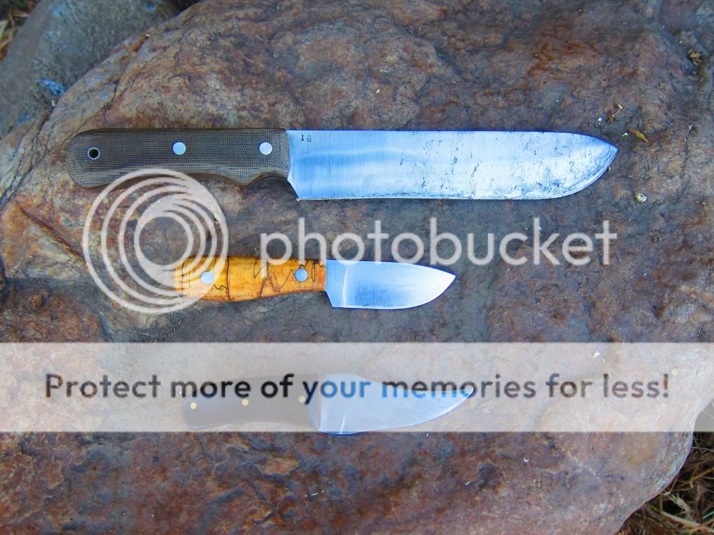 JK edc. This one has seen very little hard use. Mostly paper and cardboard cutting. The scales are spalted maple. 5 7/8" OA, 2 3/4" blade, 1/8" O1 steel. Sheath included. At the base of the handle there is some slight separation of the wood from the steel. This has no effect on the handle which is solid. $70 Shipped Spoken For.